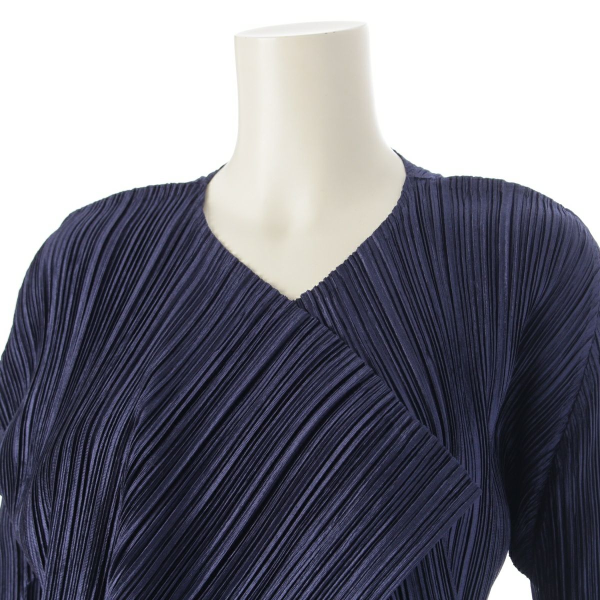 プリーツプリーズ イッセイミヤケ ノーカラー ロング カーディガン PP33-JA201 ネイビー 2