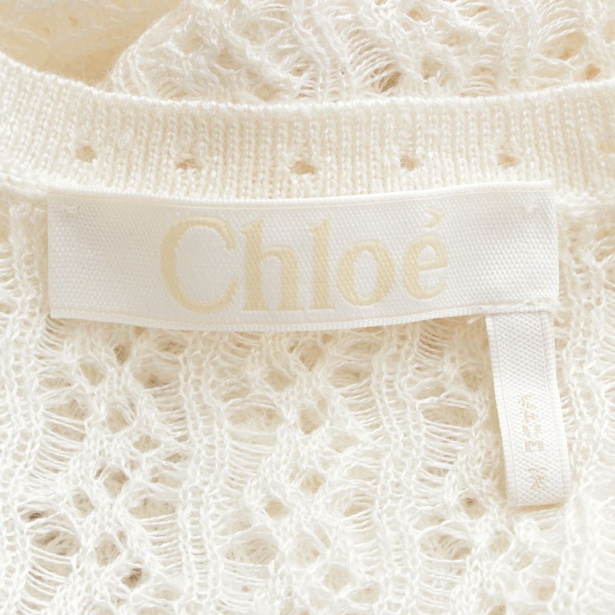 クロエ 24年 フレアスリーブ クロシェ 長袖 ニット カーディガン CHC24UMC2530107S オフホワイト S