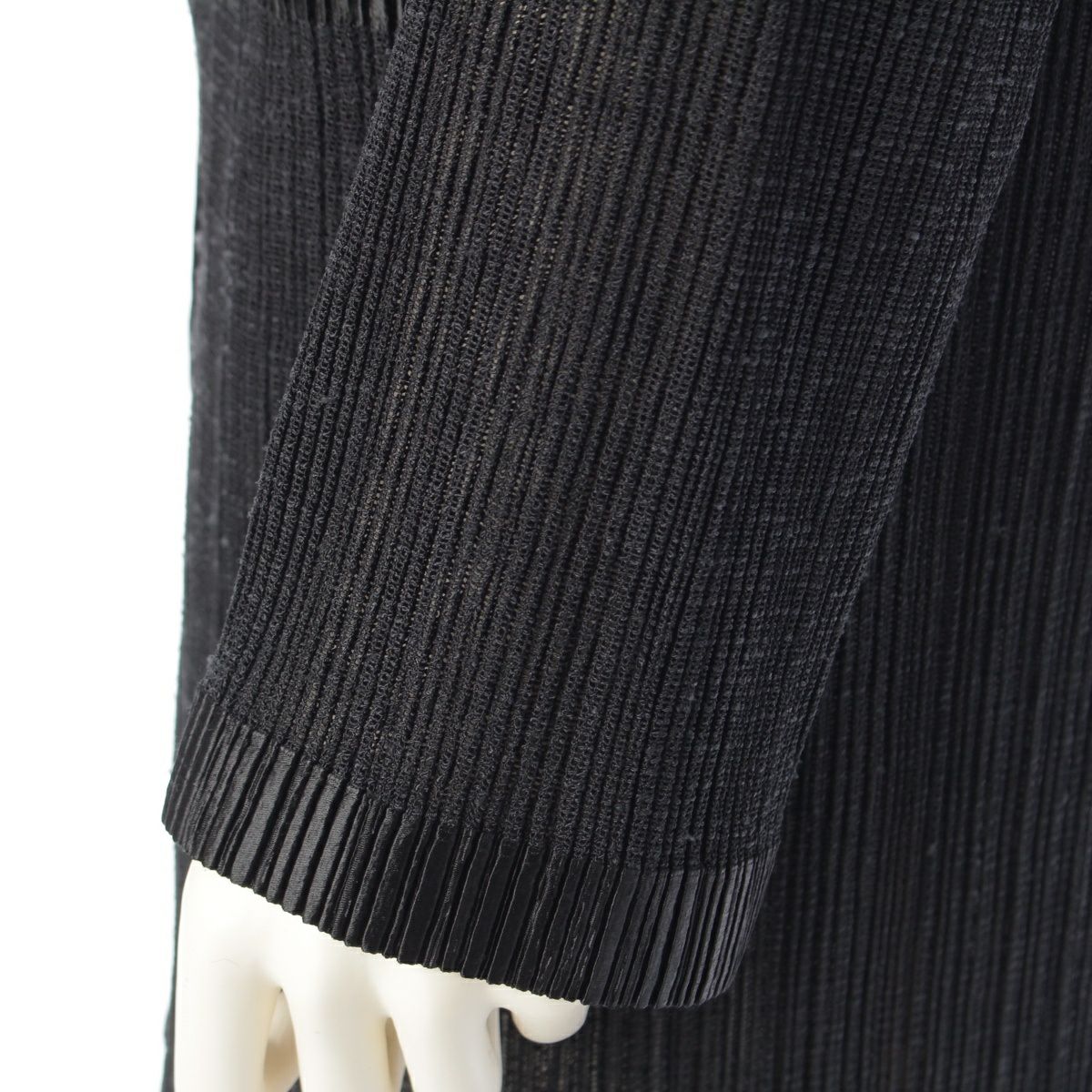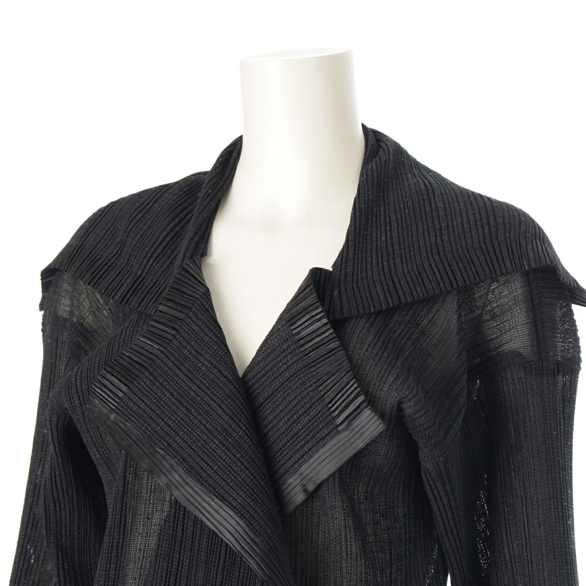 イッセイミヤケ 96SS 細プリーツ シアー トリムデザイン ロング カーディガン トップス IM61-FD907 ブラック L
