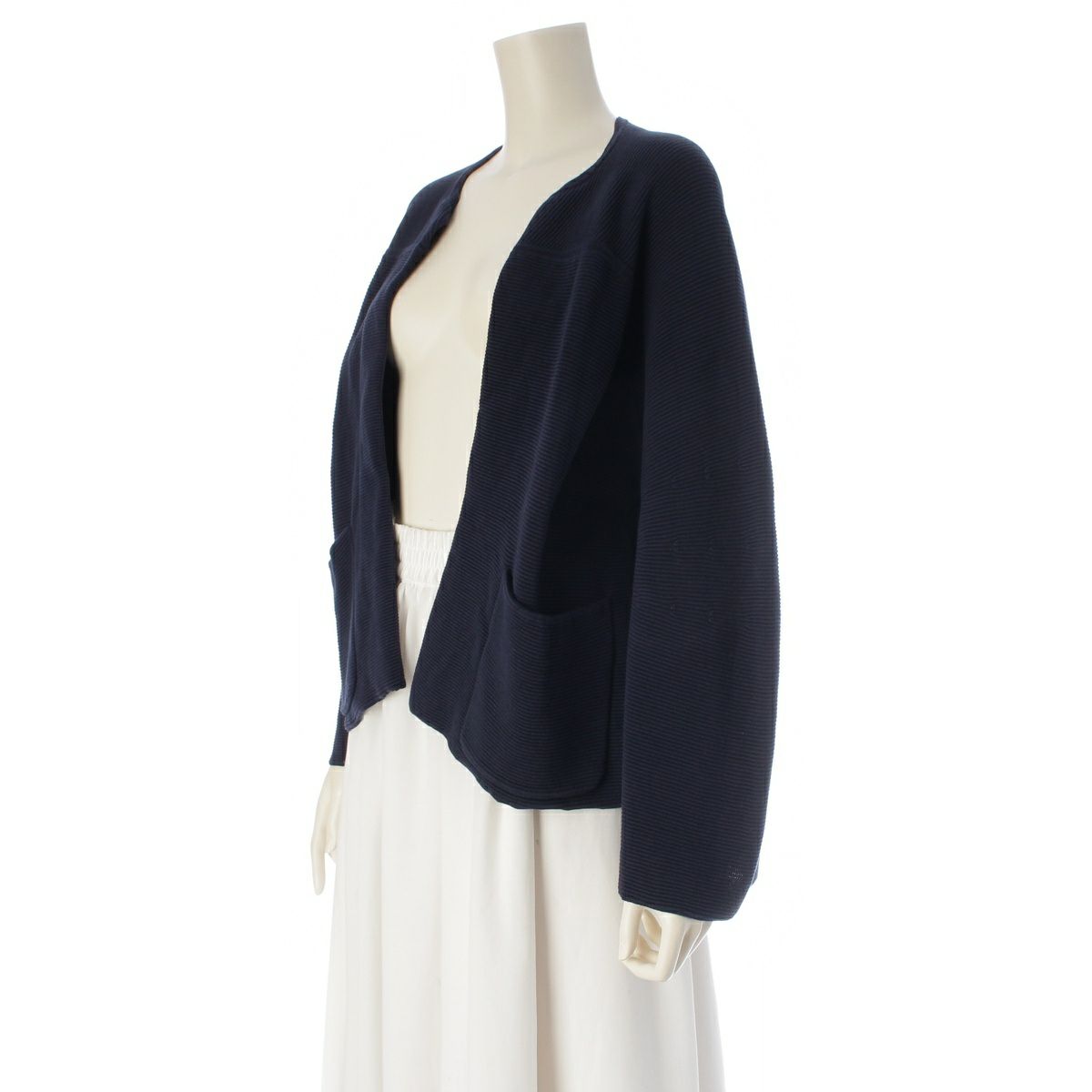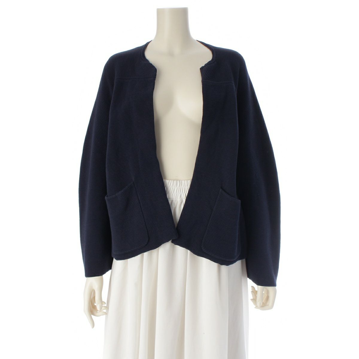ドゥロワー 12G コットン シルク クルーネック ニット カーディガン ノーカラージャケット 6522-299-0619 ネイビー 1