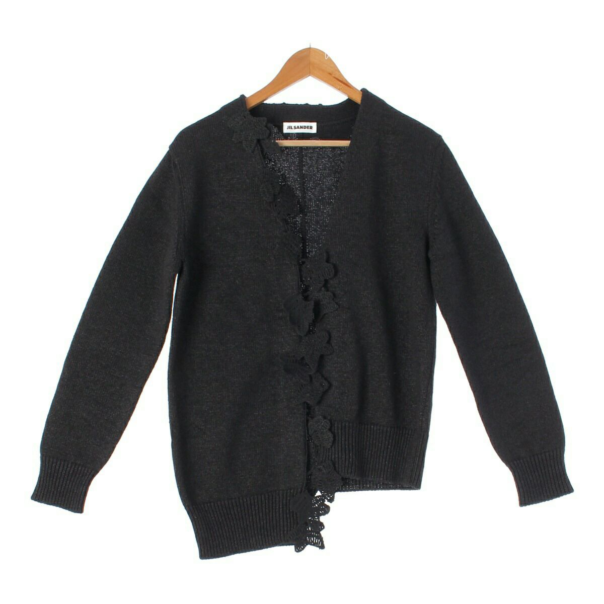 ジルサンダー クロシェ コットン ニット カーディガン トップス ブラック 34