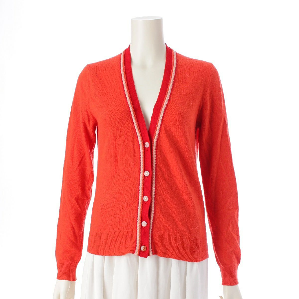 シャネル 02P カシミヤ ココマーク Vネック ニット カーディガン トップス P19097 レッド 40