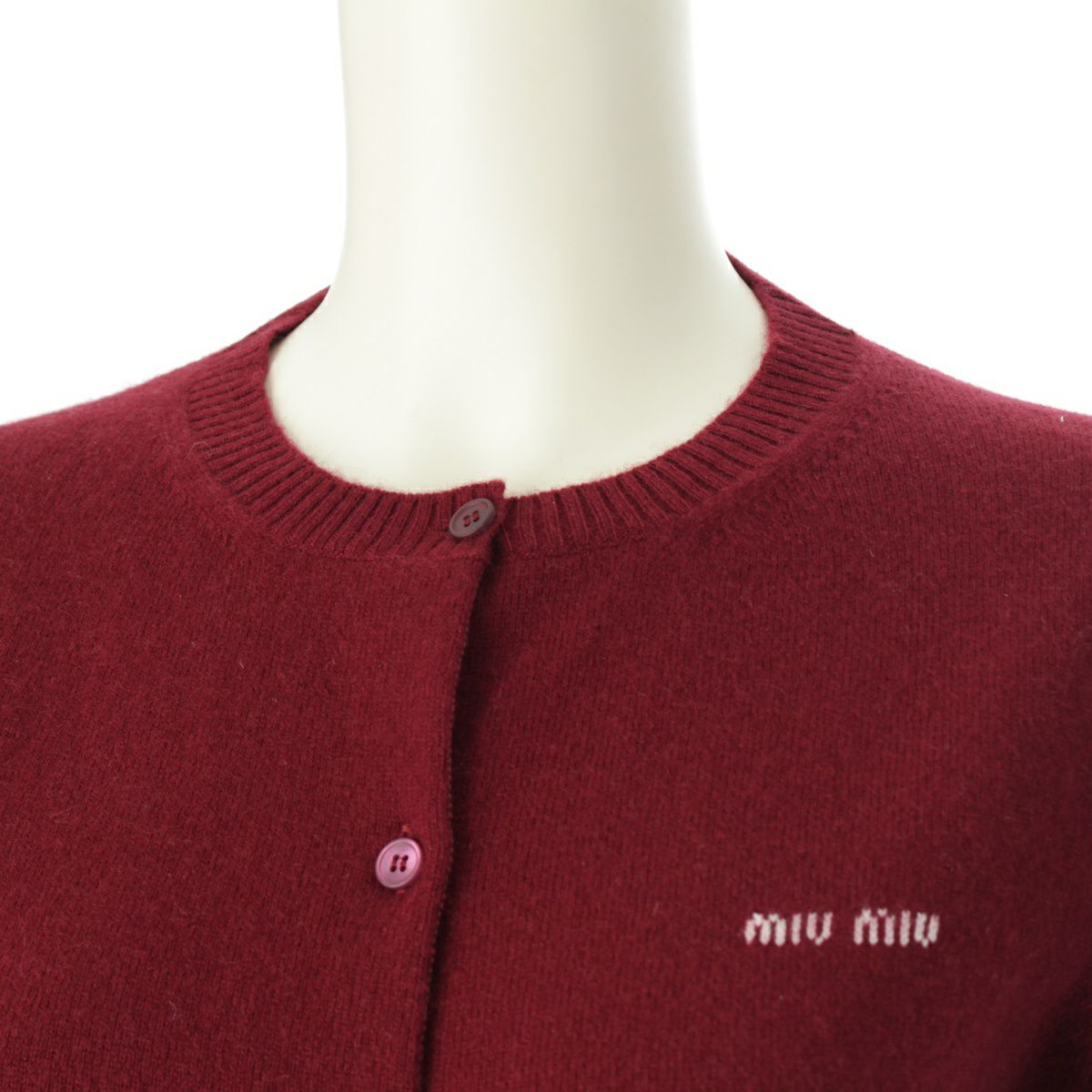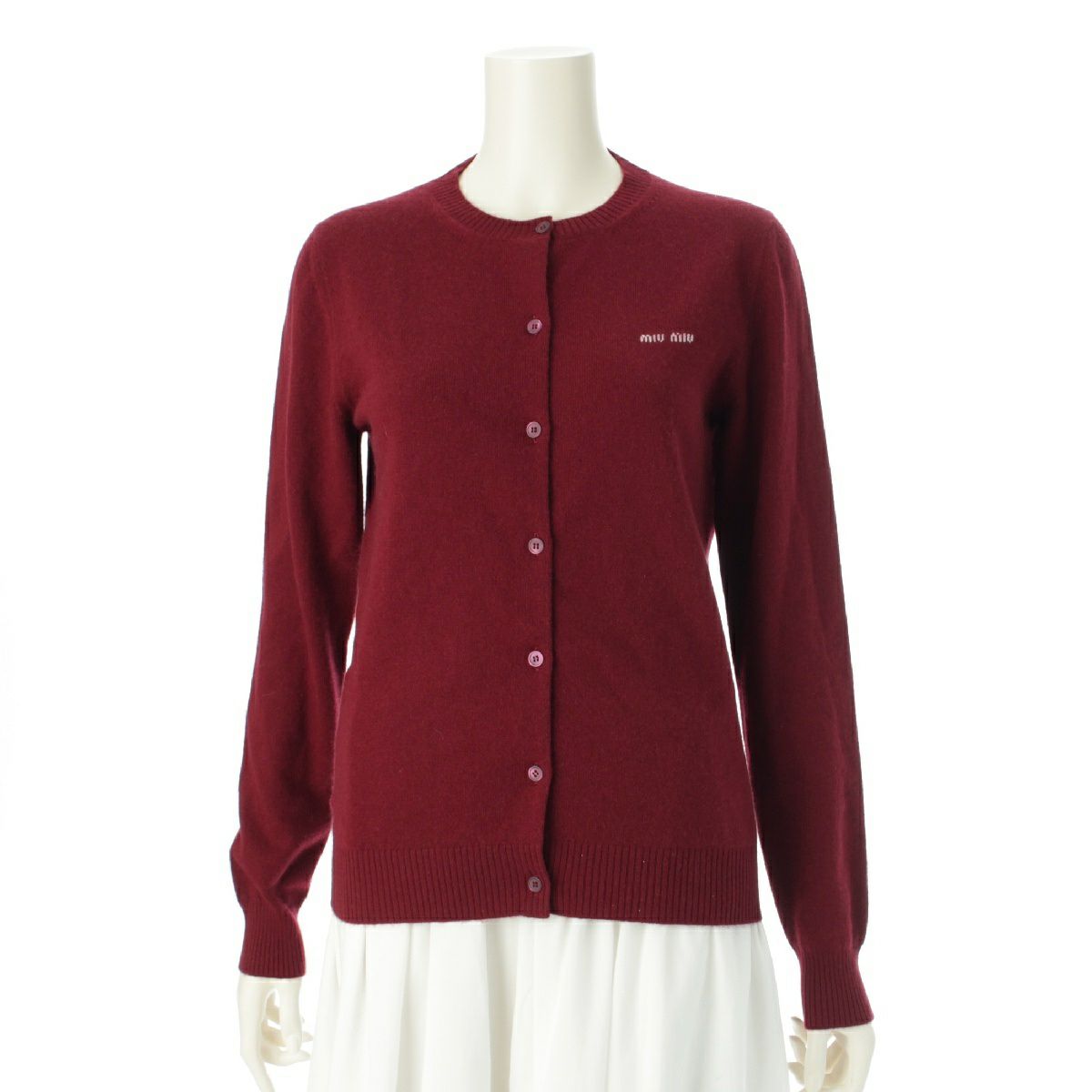 ミュウミュウ 24AW カシミヤ ロゴ クルーネック ニット カーディガン トップス MMF787 ボルドー 40