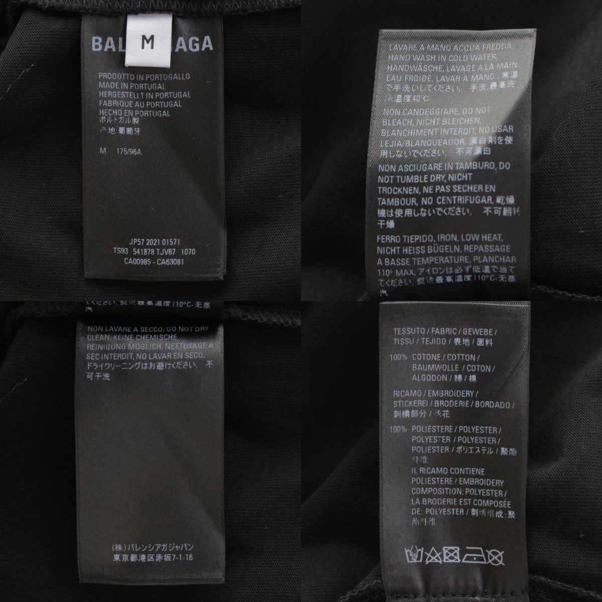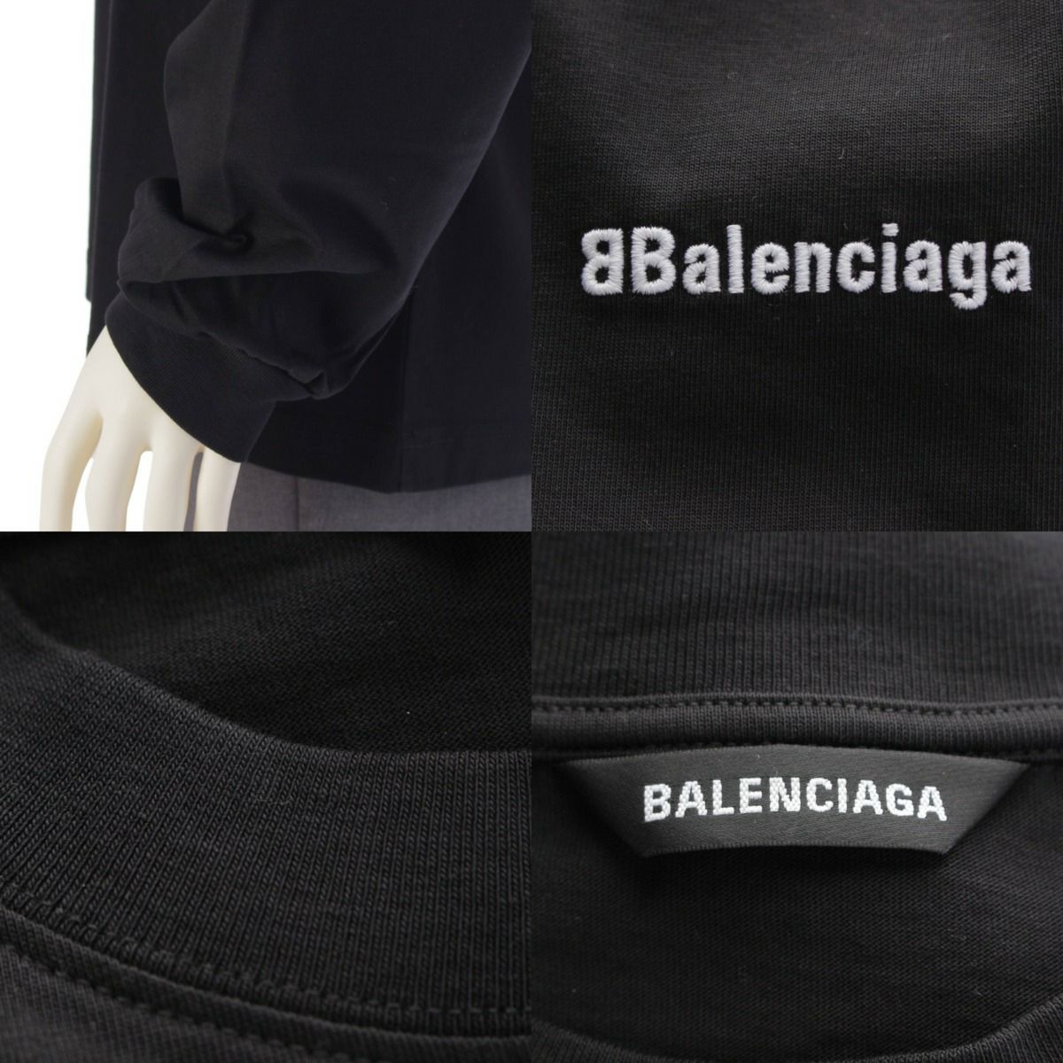 バレンシアガ 21年 ロゴ刺繍 長袖Tシャツ トップス カットソー 541878 ブラック M