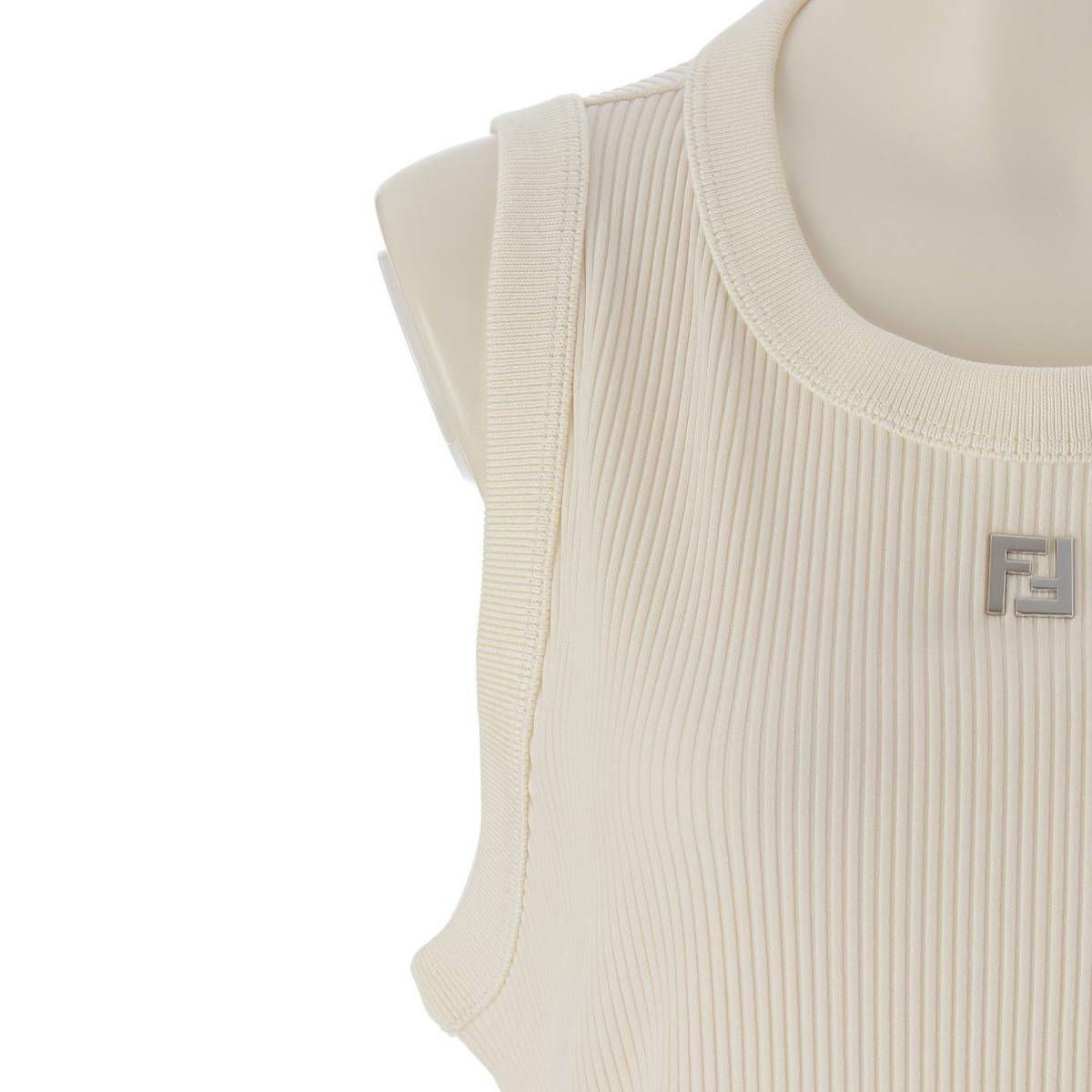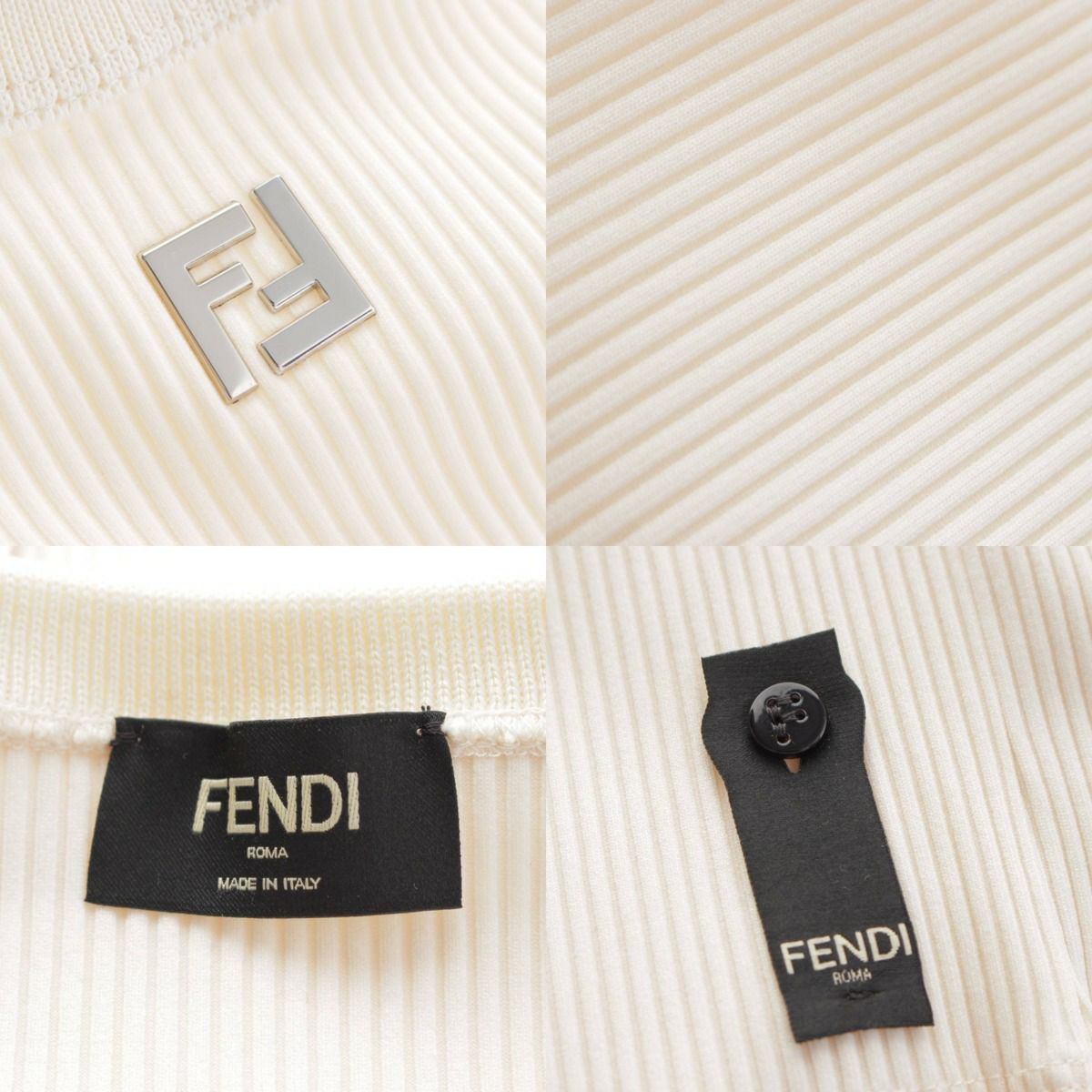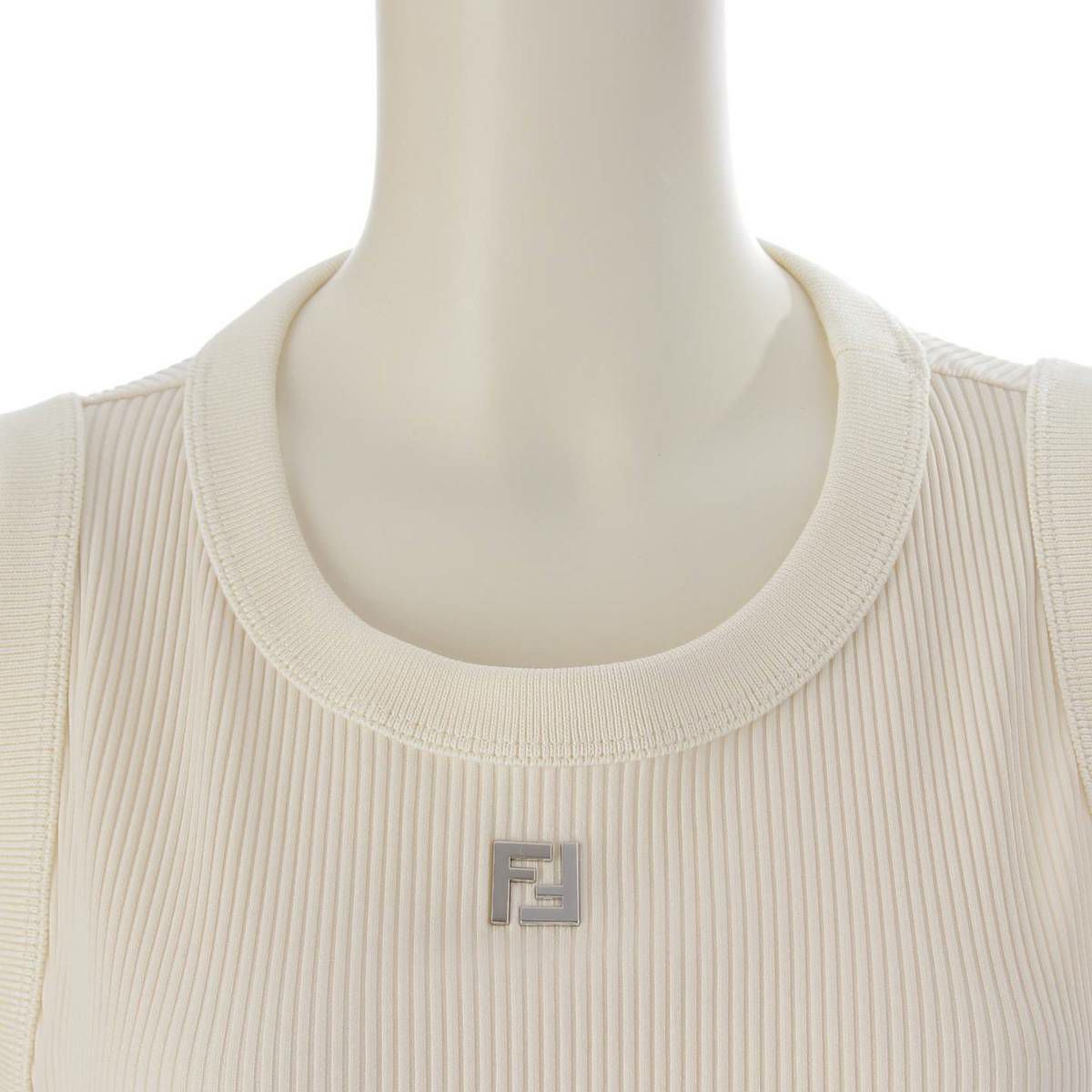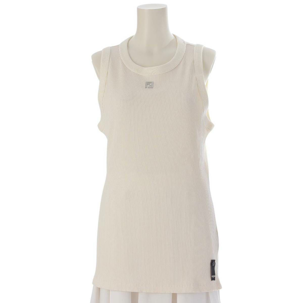 フェンディ 24SS FFロゴ リブ タンクトップ トップス カットソー FY1297 ホワイト シルバー XL
