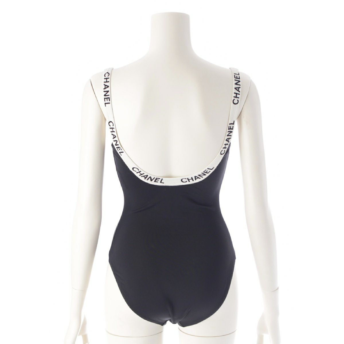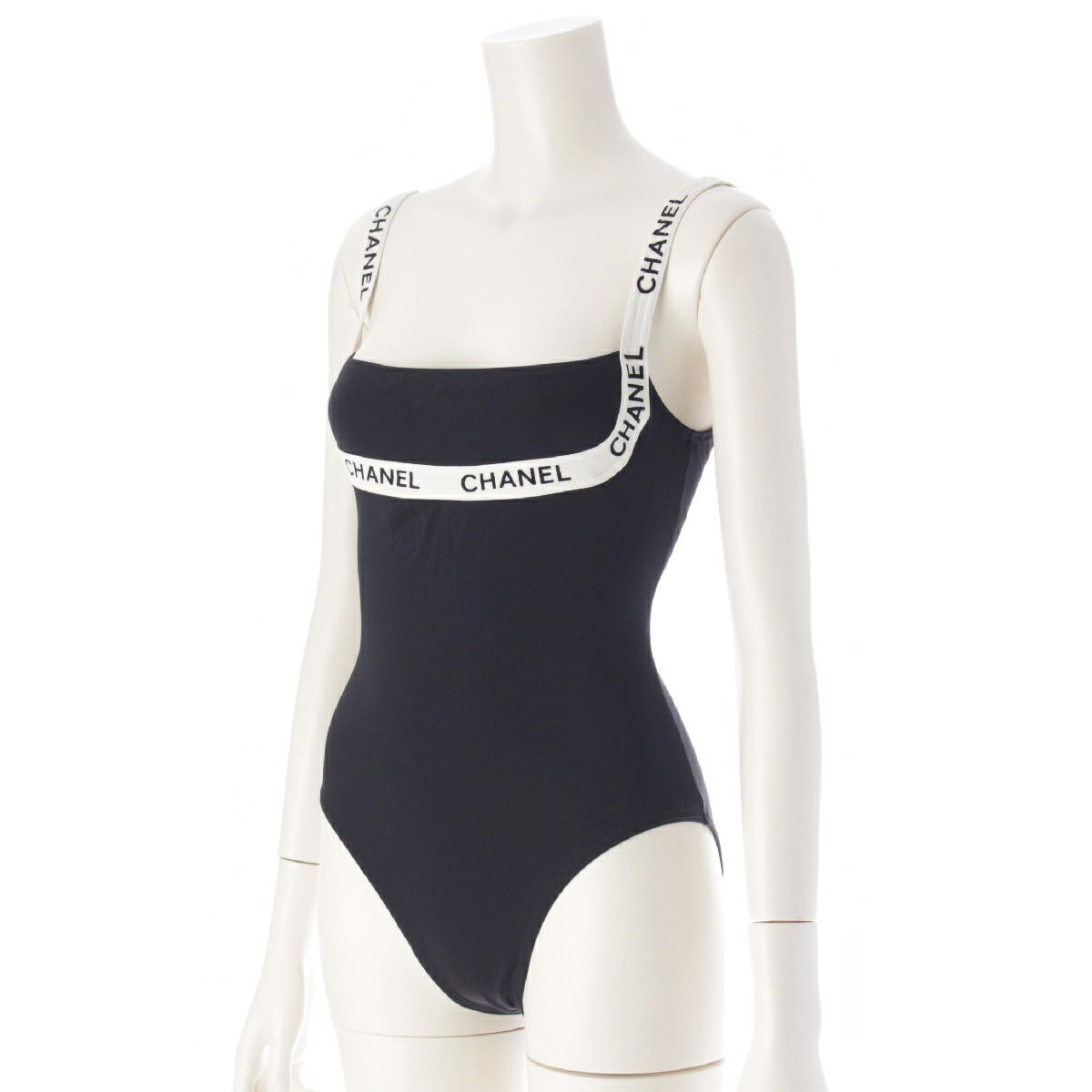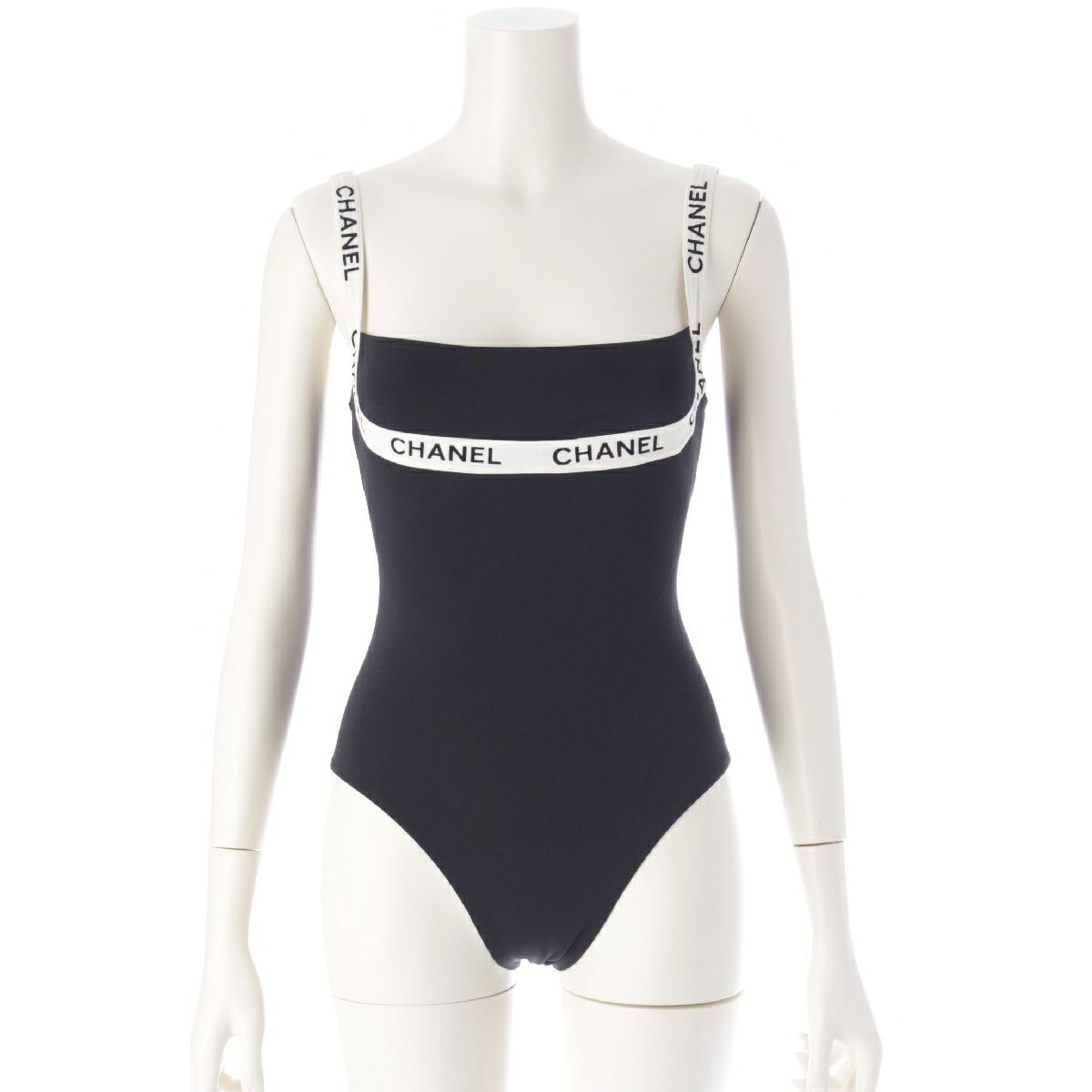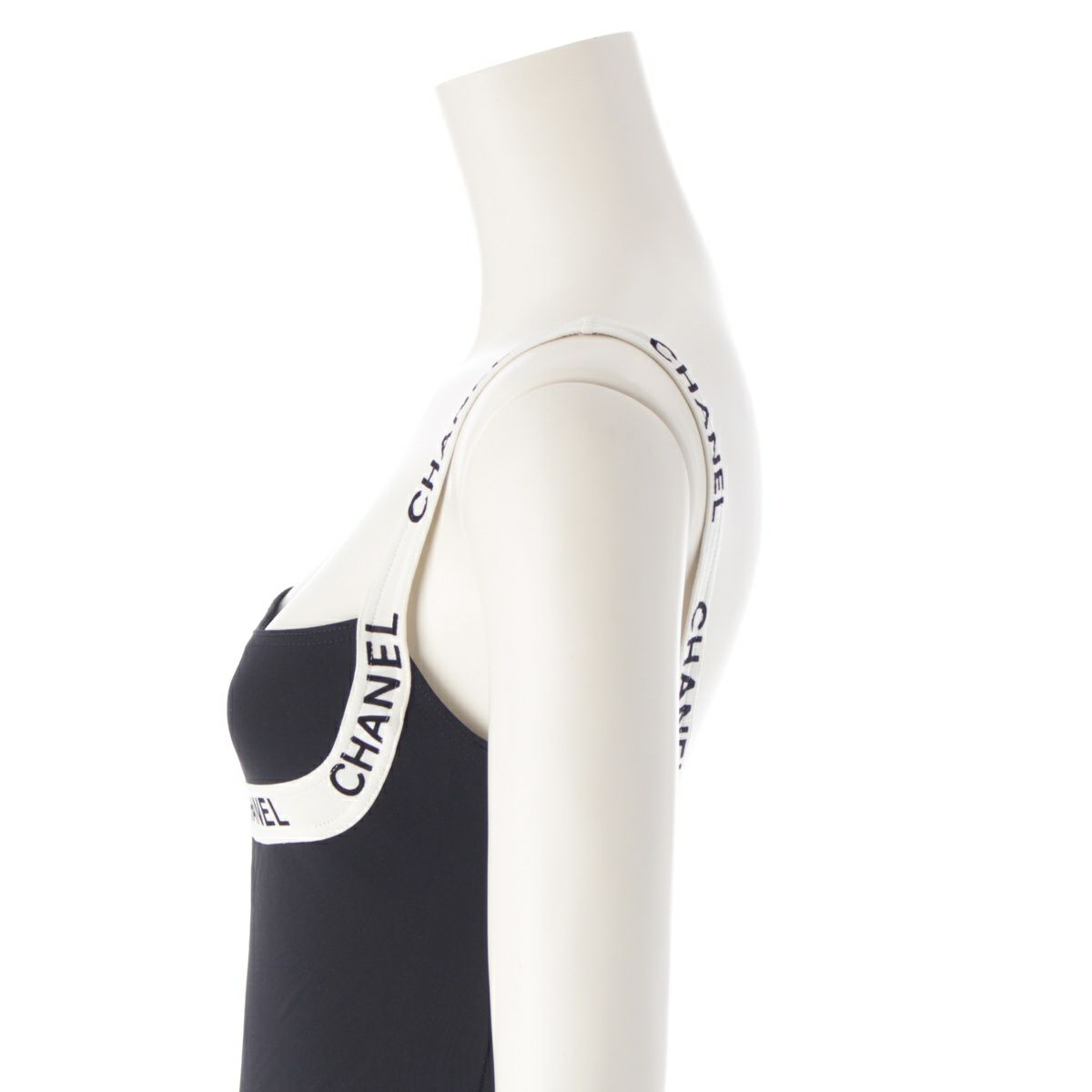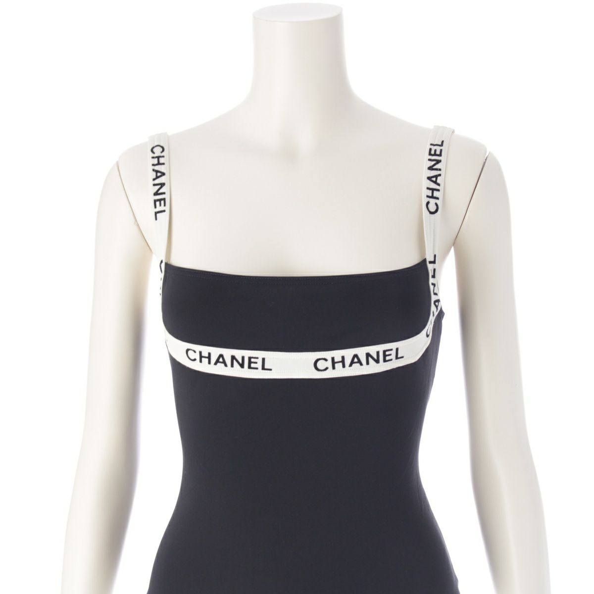 シャネル P95 ヴィンテージ ロゴテープ キャミソール スイムウェア 水着 ブラック 38