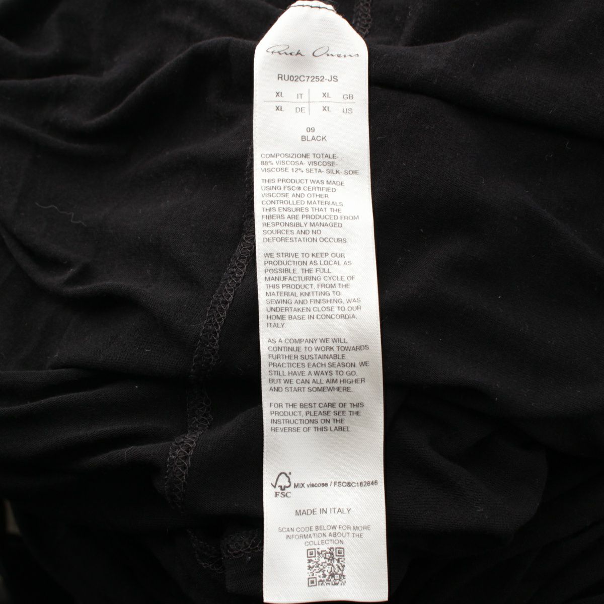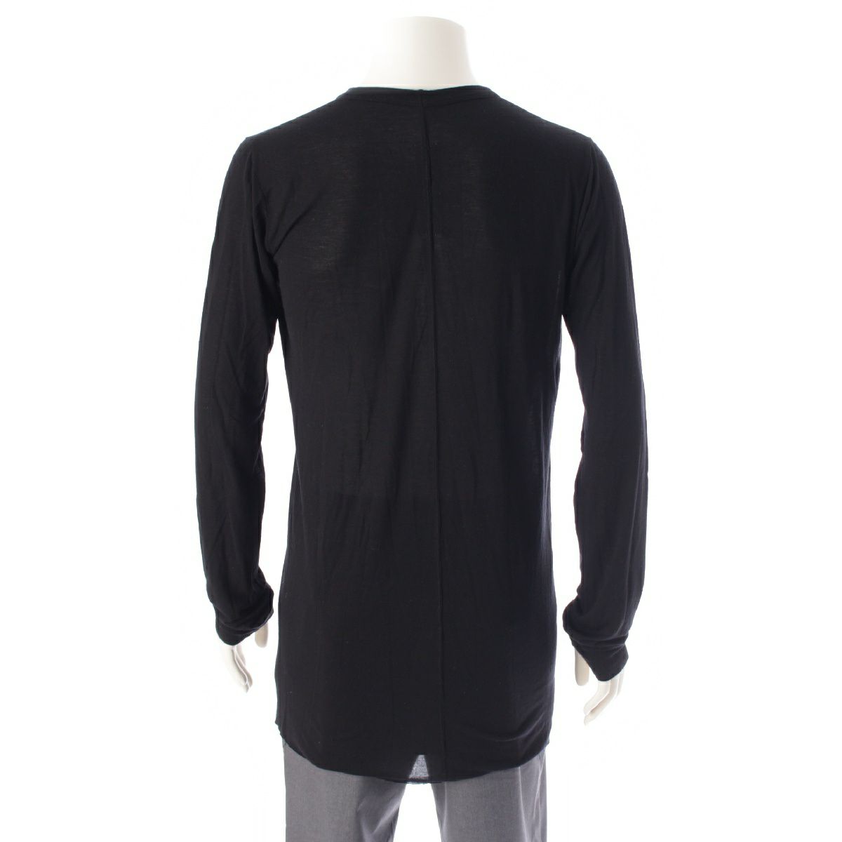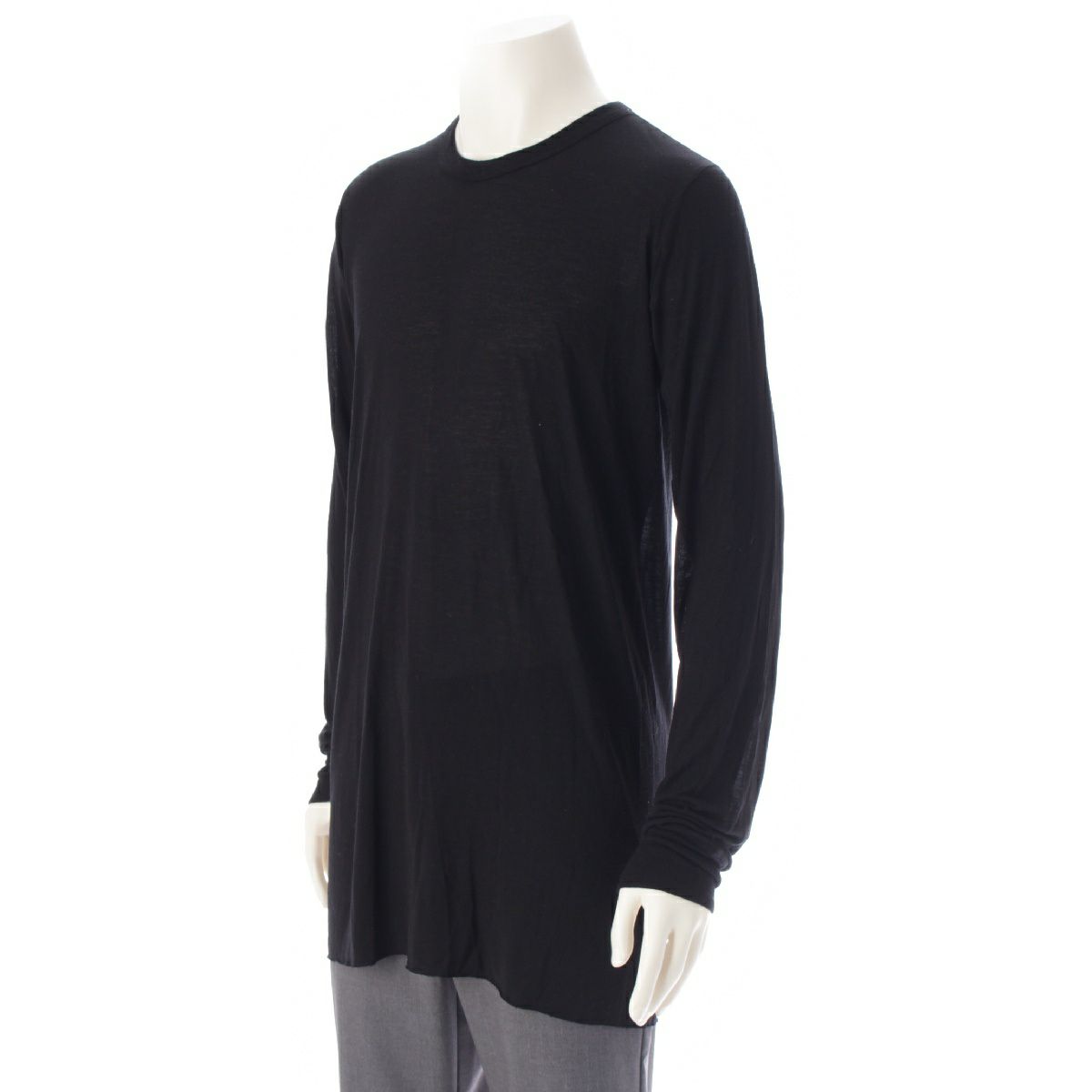 リックオウエンス 23AW ビスコース×シルク BASIC LONG TEE 長袖クルーネック カットソー トップス RU02C7252-JS ブラック XL