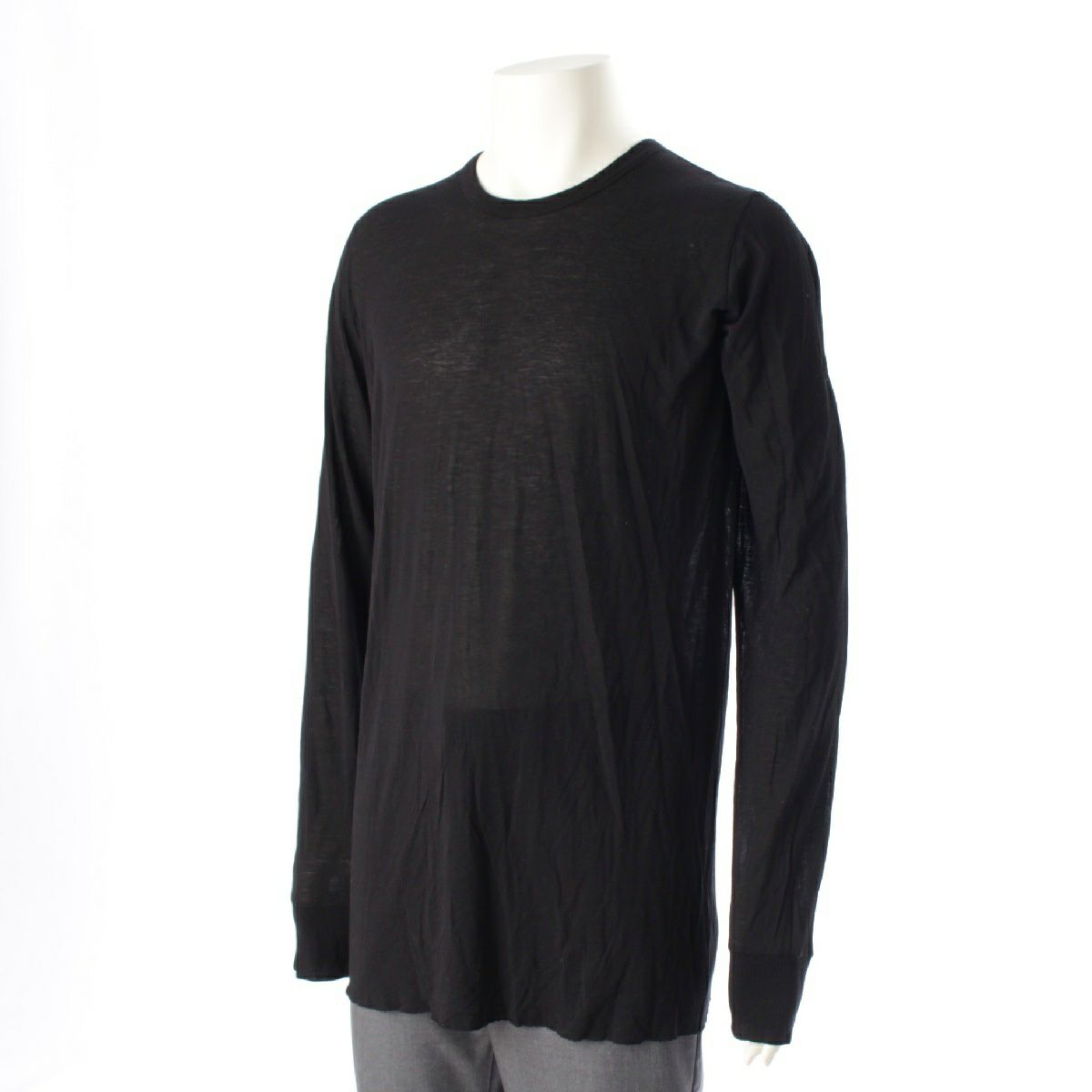 リックオウエンス 21AW BASIC LS TEE シルク ベーシックロングスリーブ クルーネック 長袖Tシャツ シースルーカットソー トップス RU02A5252 ブラック XL