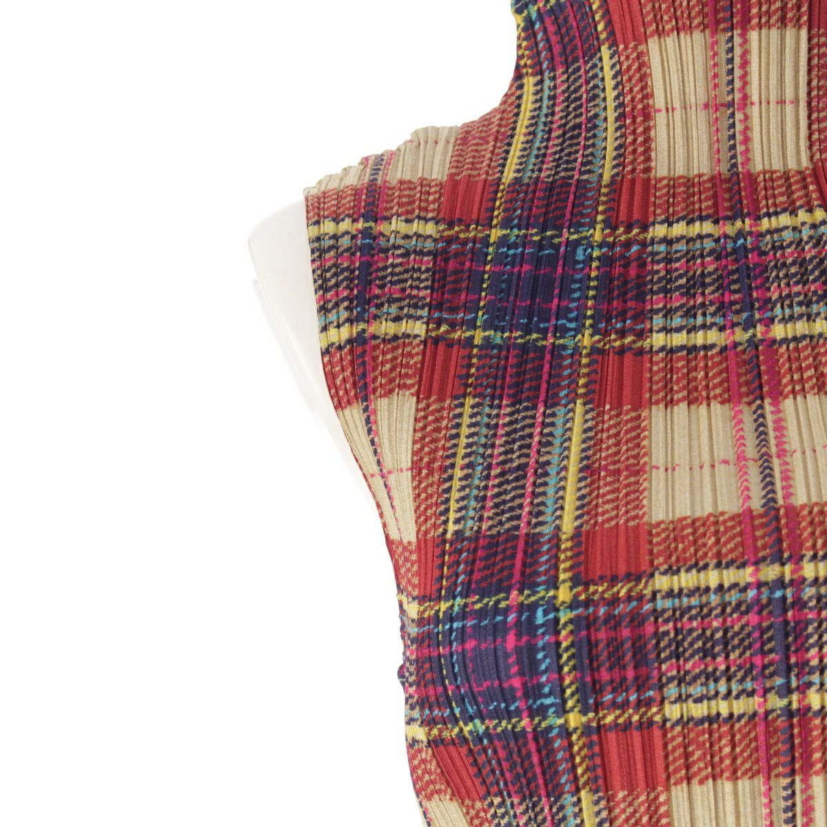 プリーツプリーズ イッセイミヤケ チェック柄 カットソー ハイネック ノースリーブ PP23-JK901 マルチカラー イエロー オレンジ 3