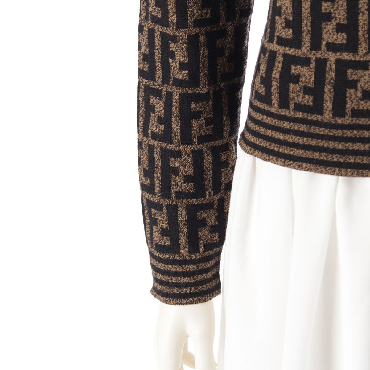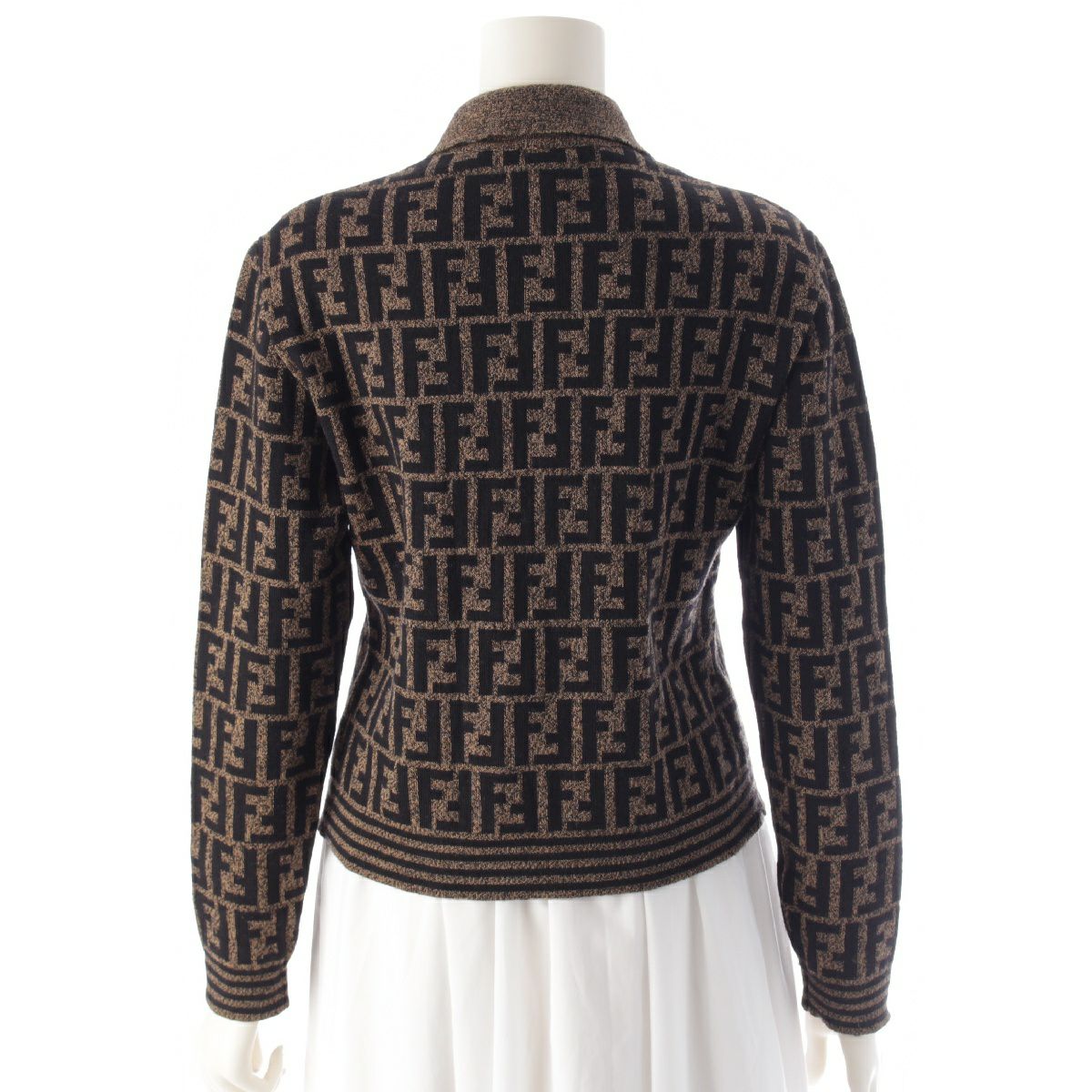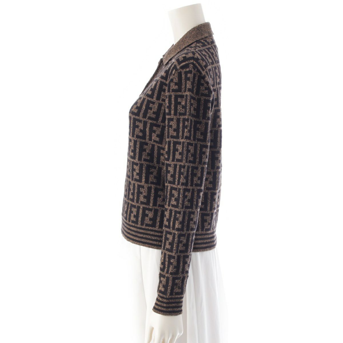 フェンディ メリノウール ズッカ総柄 長袖ニット クロップド ポロシャツ ブラウン ブラック 42