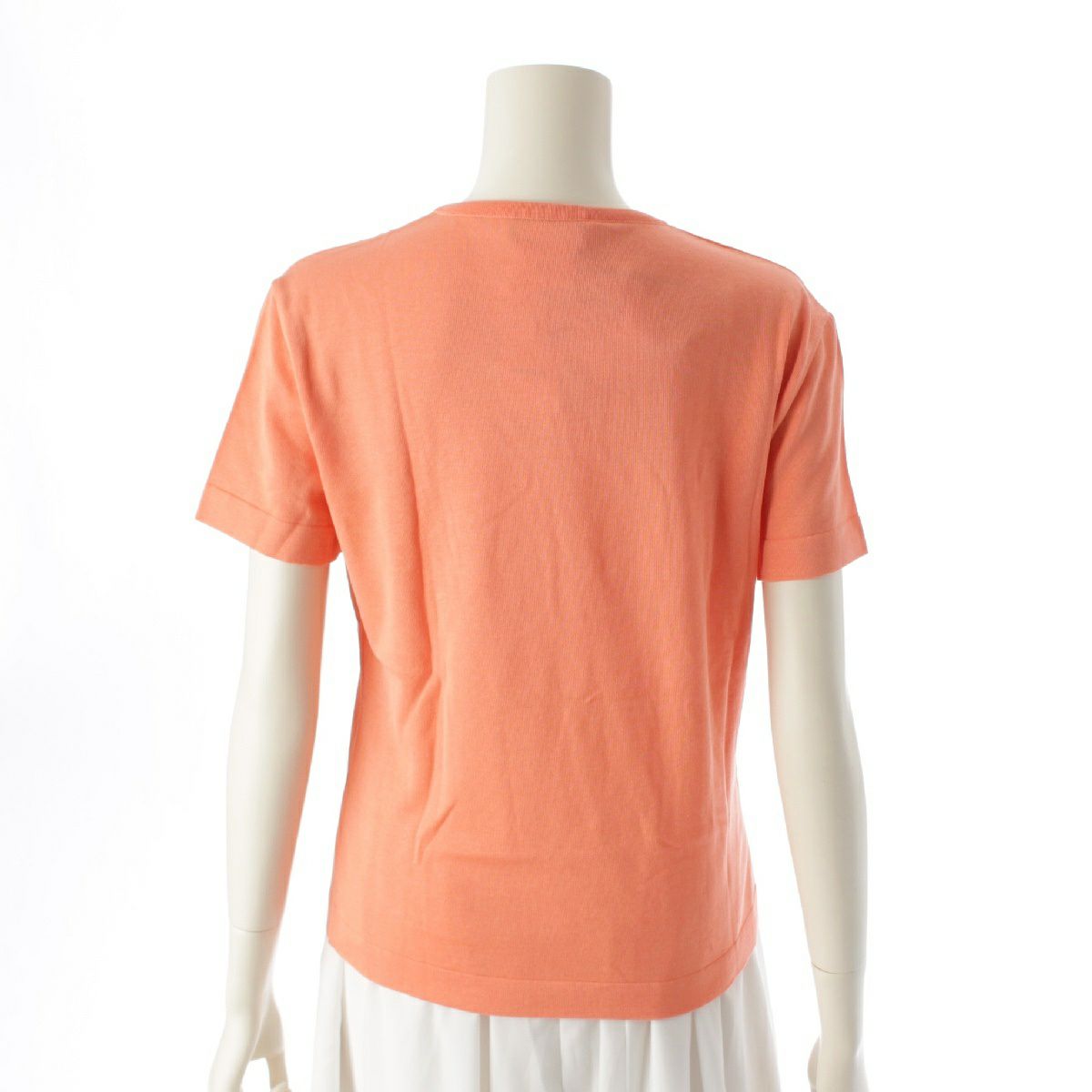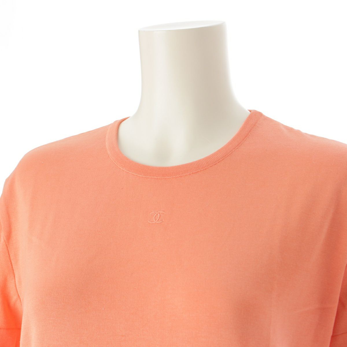 シャネル 97P コットン ココマーク ワンポイント刺 ニット 半袖Tシャツ カットソー トップス P07156 サーモンオレンジ 42