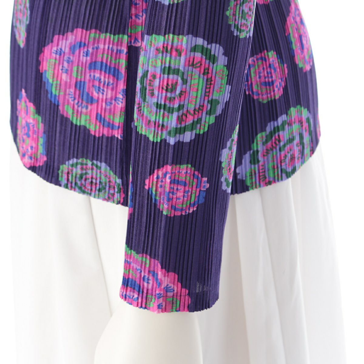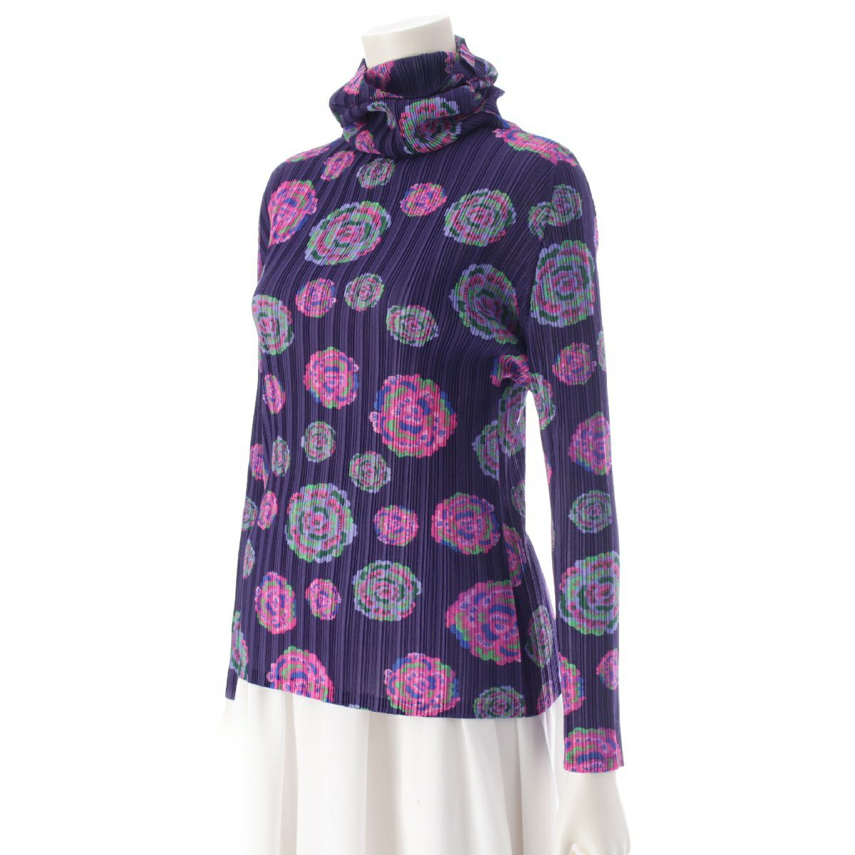 プリーツプリーズ イッセイミヤケ ハイネック 花柄 フラワー カットソー トップス パープル 3
