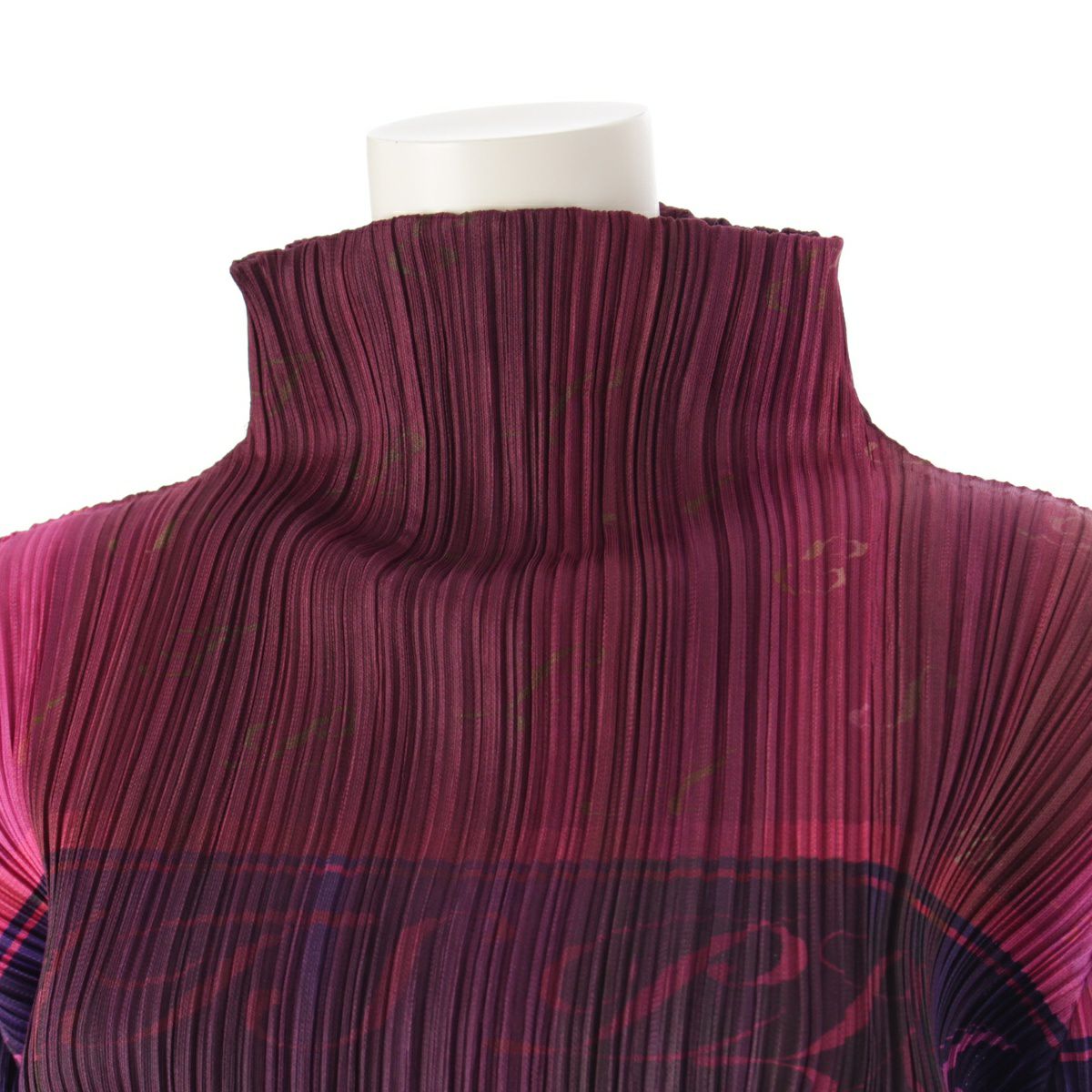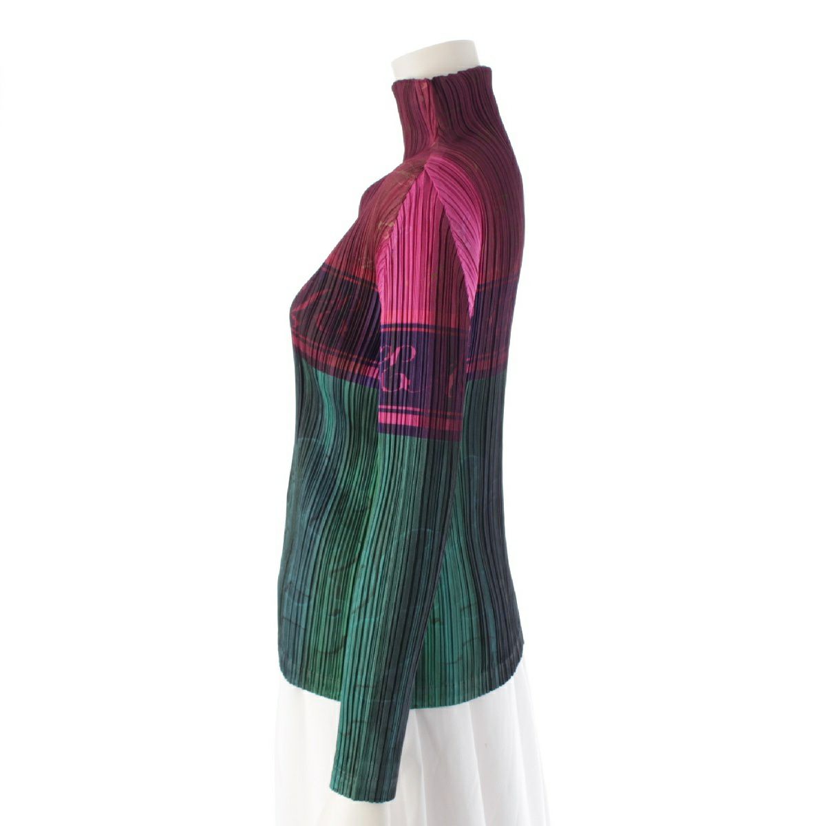 プリーツプリーズ イッセイミヤケ シャンパンボトル モックネック カットソー 長袖 トップス PP83-JK671 パープル グリーン マルチカラー 3