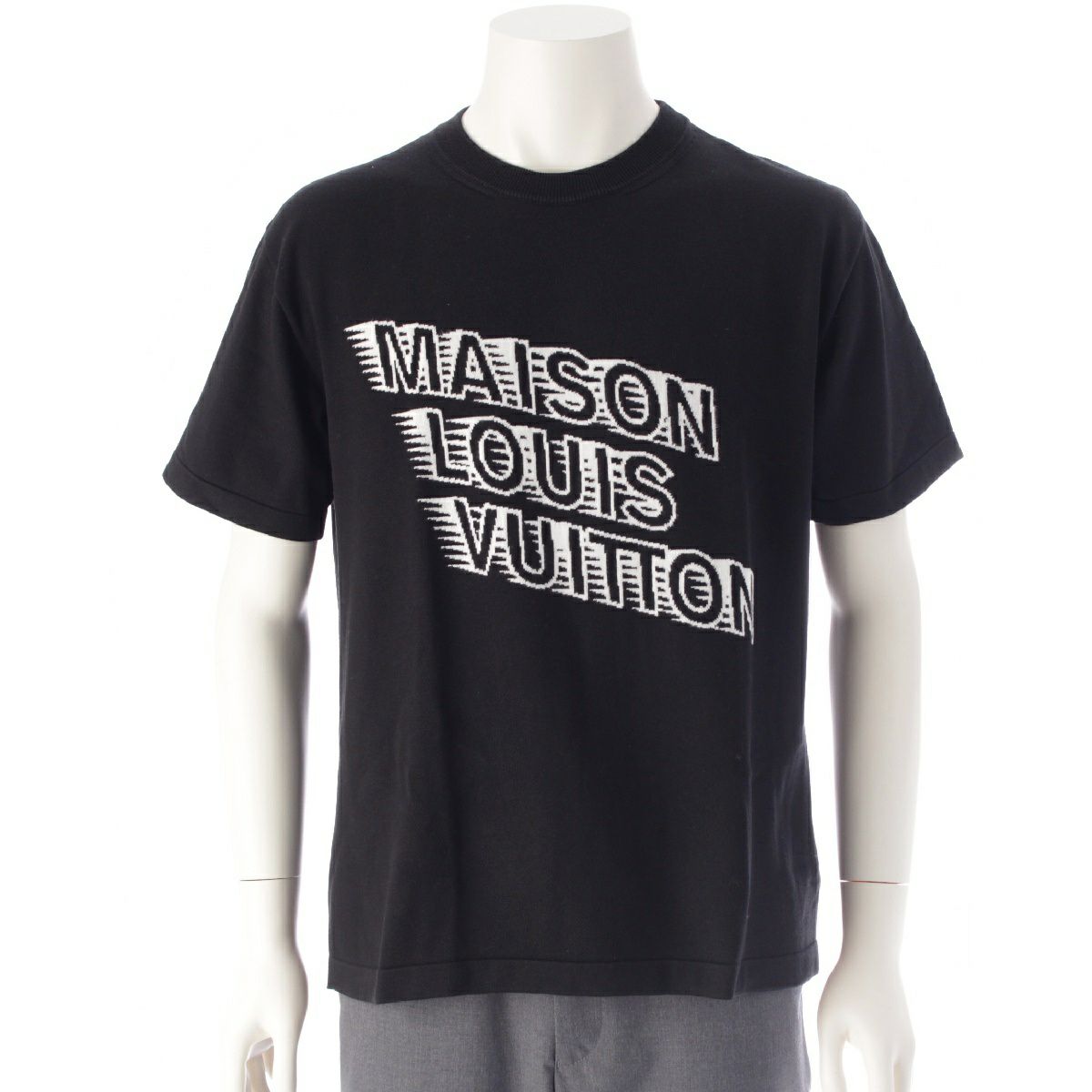 ルイヴィトン 21AW コットン×シルク ロゴ刺繍 クルーネック オーバーサイズ ニット 半袖Tシャツ トップス RM2129 HA0 HLN31W ブラック XS