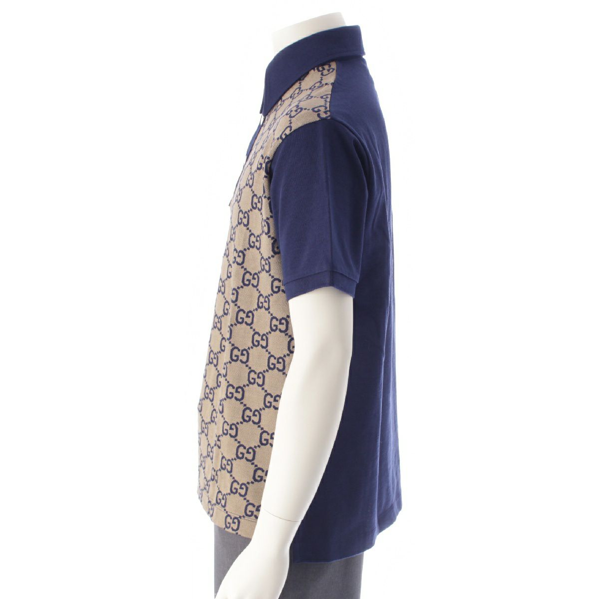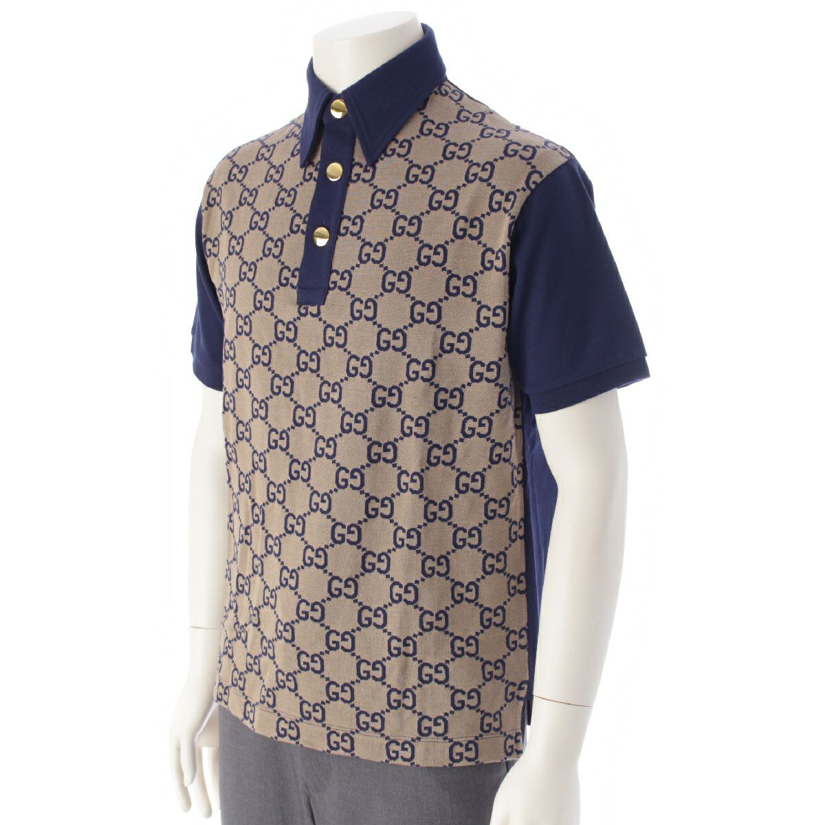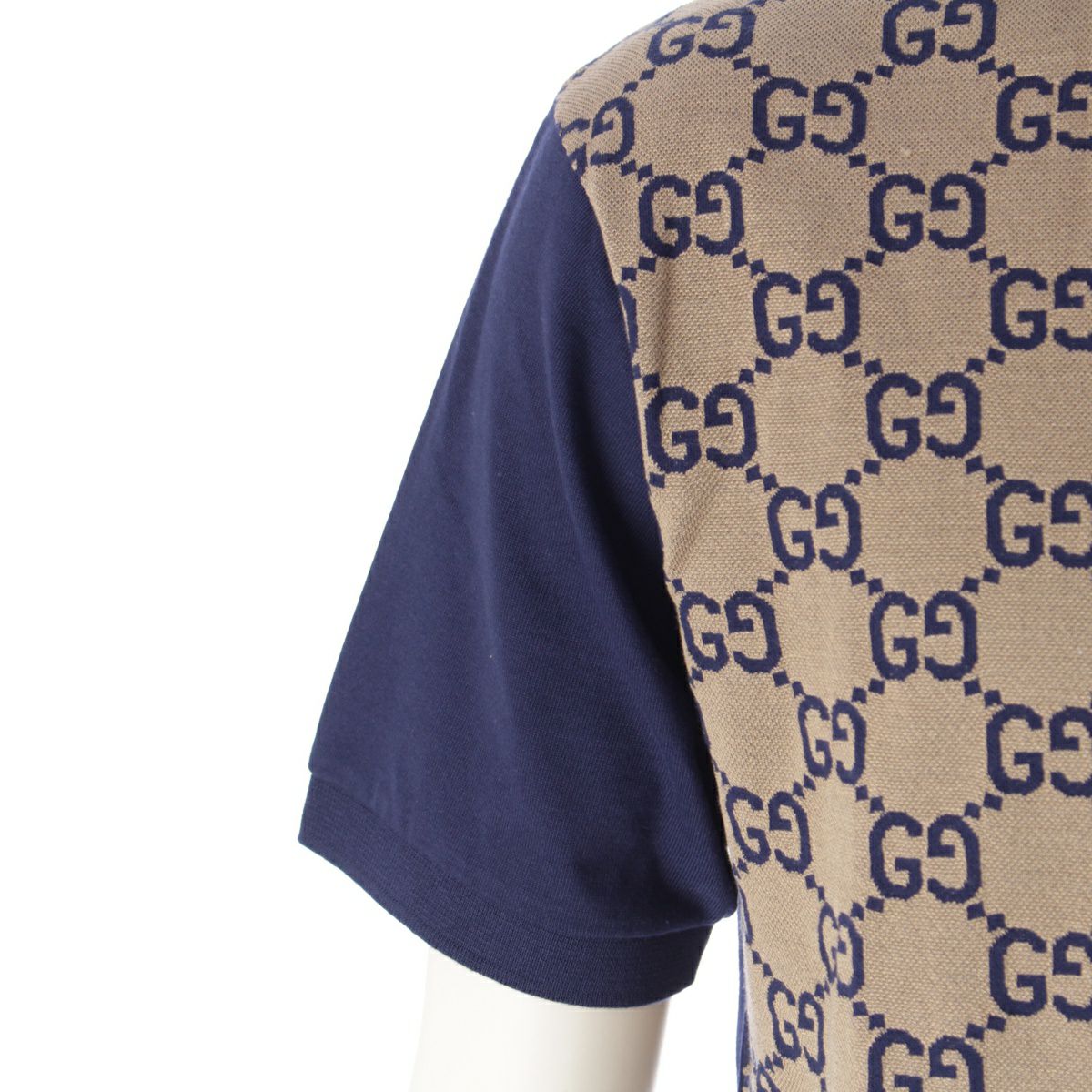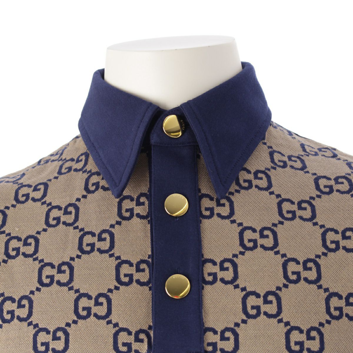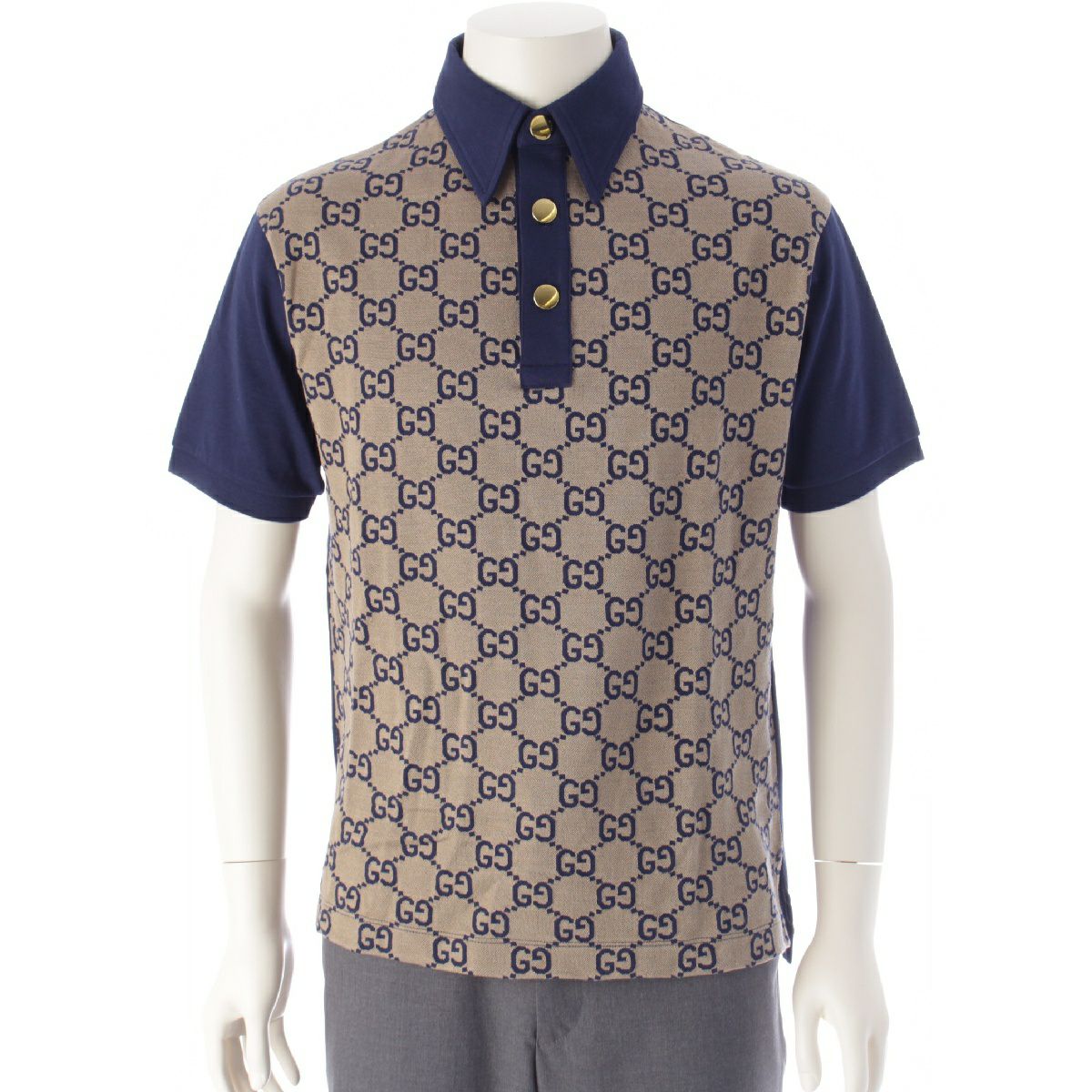 グッチ マキシGG シルクコットン 半袖 ポロシャツ トップス 682015 ベージュ ネイビー S