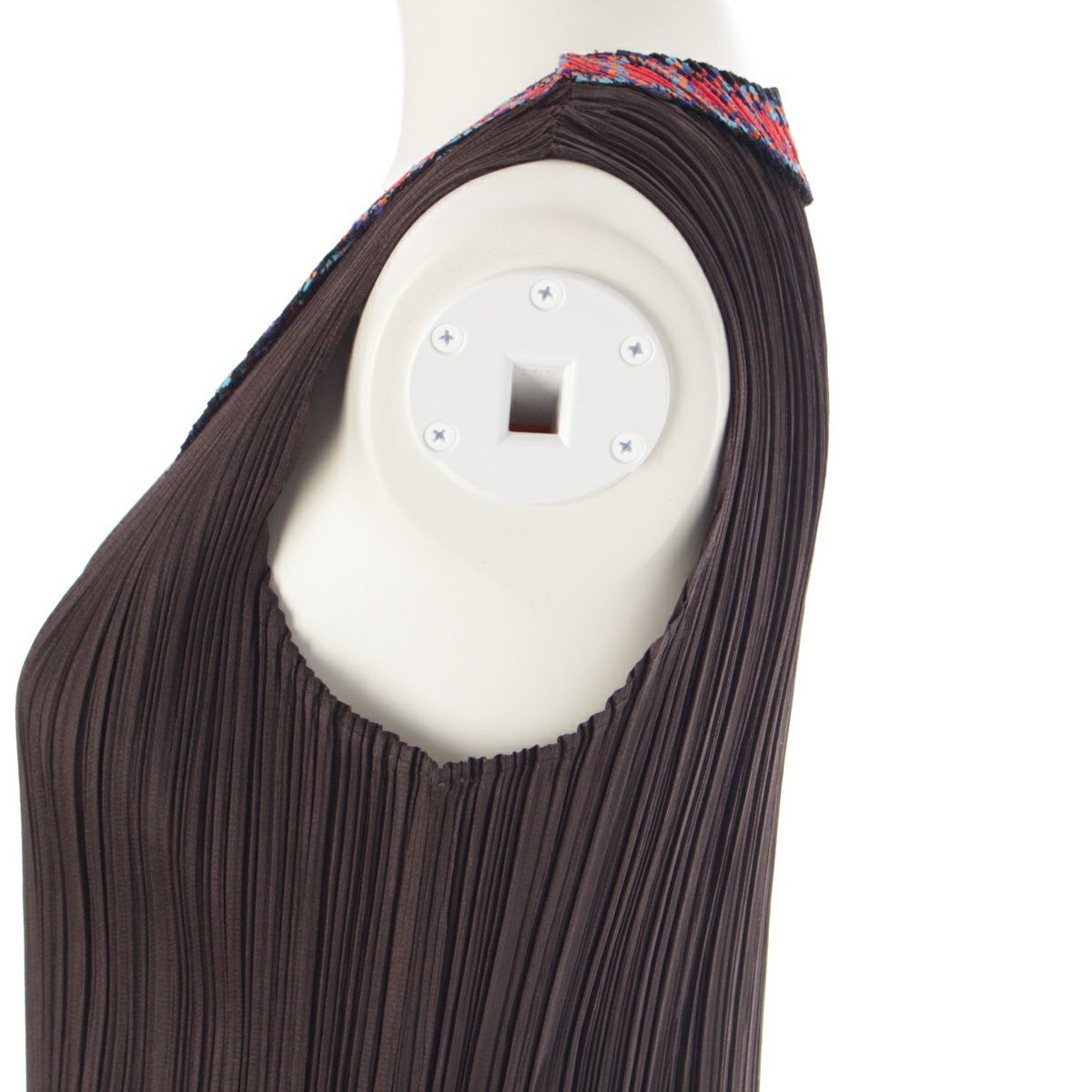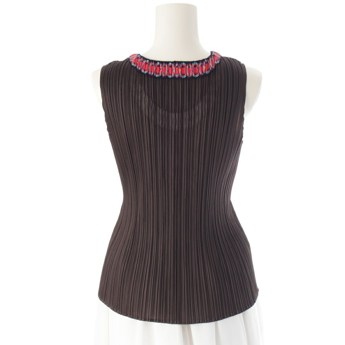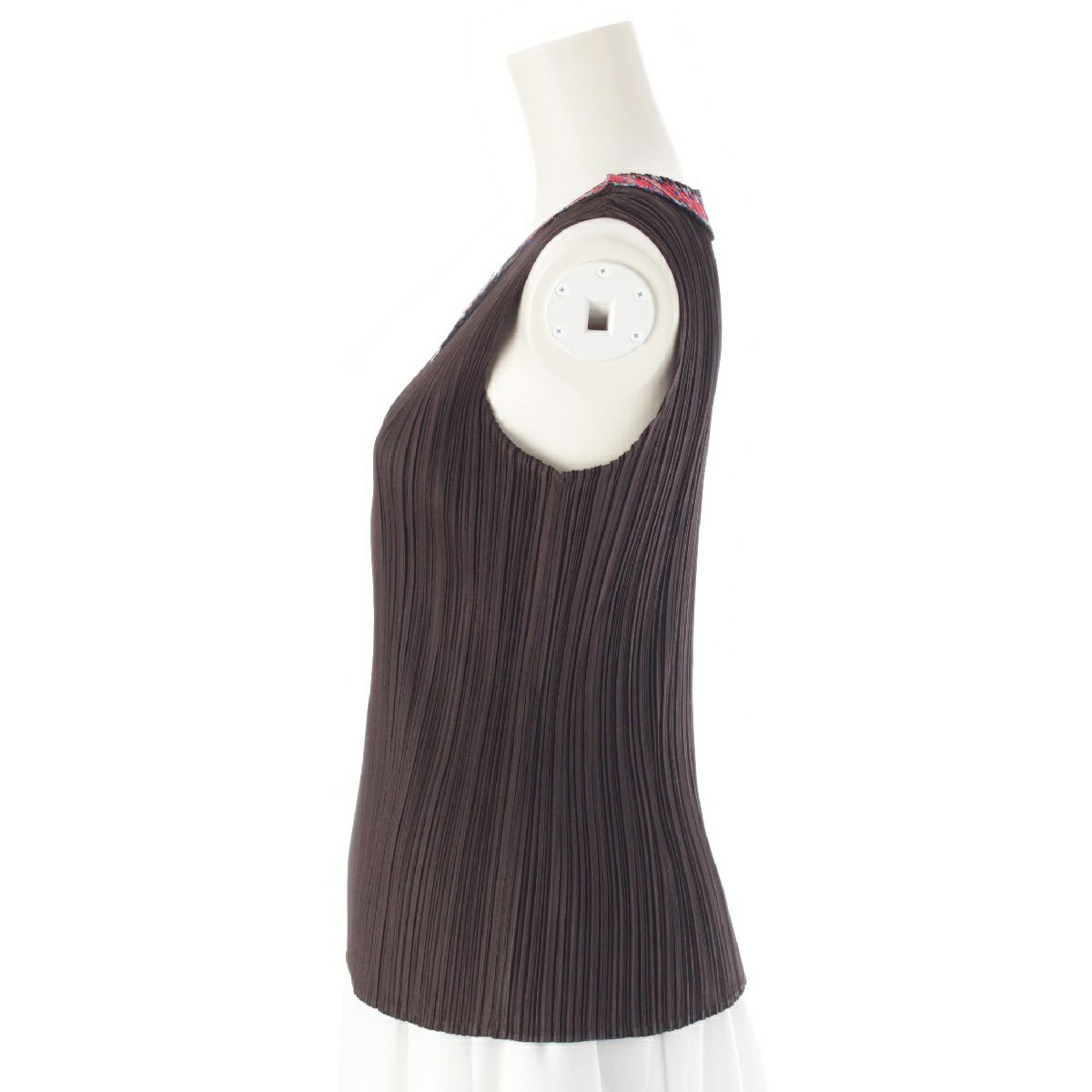 プリーツプリーズ イッセイミヤケ 裾刺繍 ノースリーブ カットソー トップス PP73-JK571 ブラウン 4