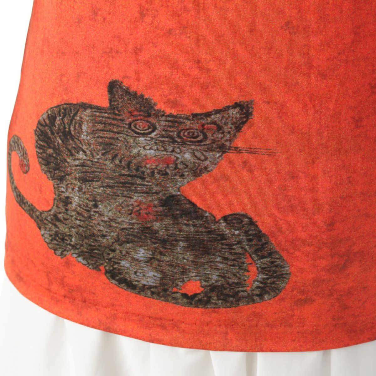 プリーツプリーズ イッセイミヤケ Tiger Cat タイガーキャット 民画 カットソー 半袖 Tシャツ オレンジ ブラウン 3
