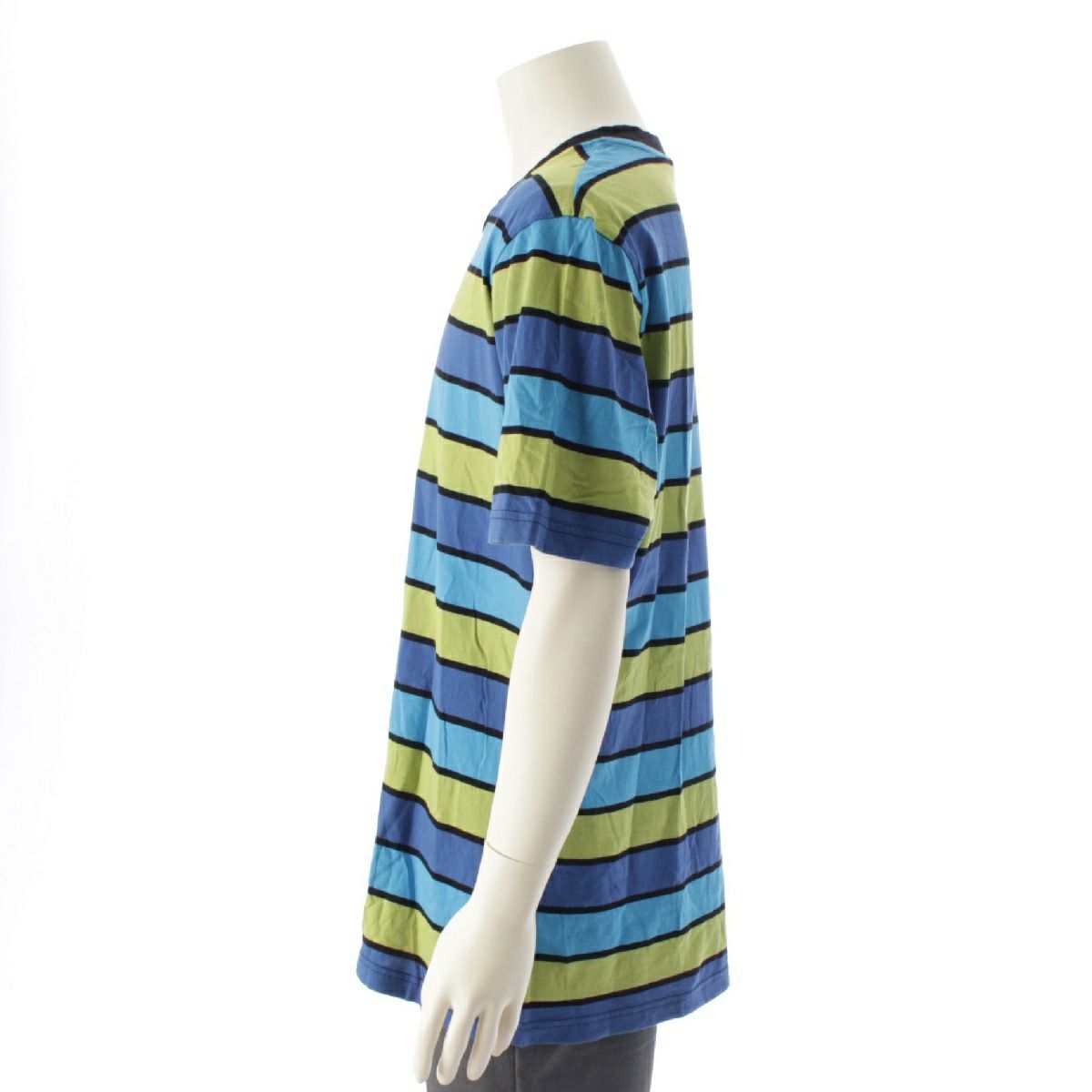 マルニ 22SS コットン ボーダー切替 クルーネック 半袖Tシャツ トップス カットソー マルチカラー ライトブルー グリーン系 56