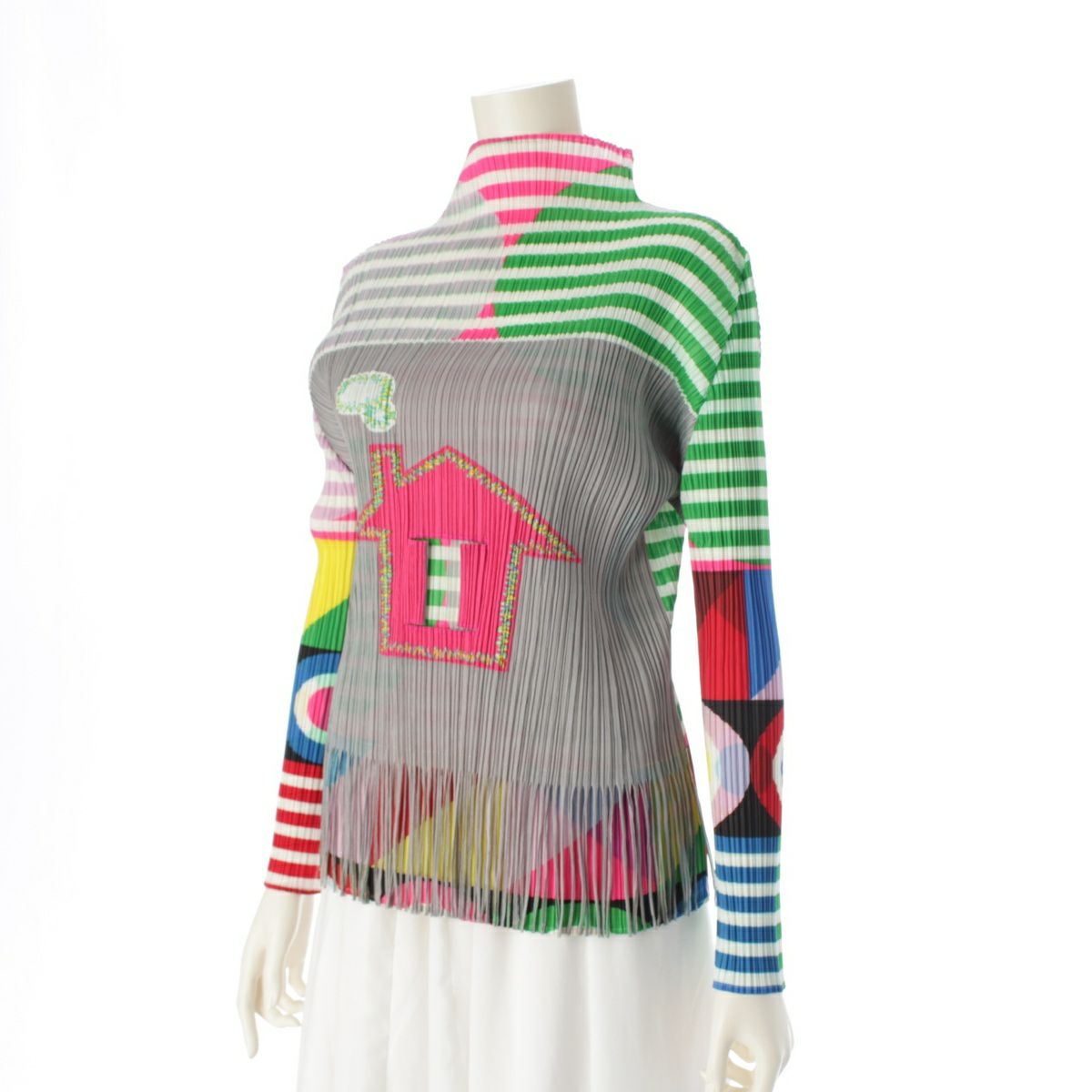 プリーツプリーズ イッセイミヤケ フリンジ 家柄 変形 ボトルネック 長袖 カットソー トップス PP71-JK573 マルチカラー 3