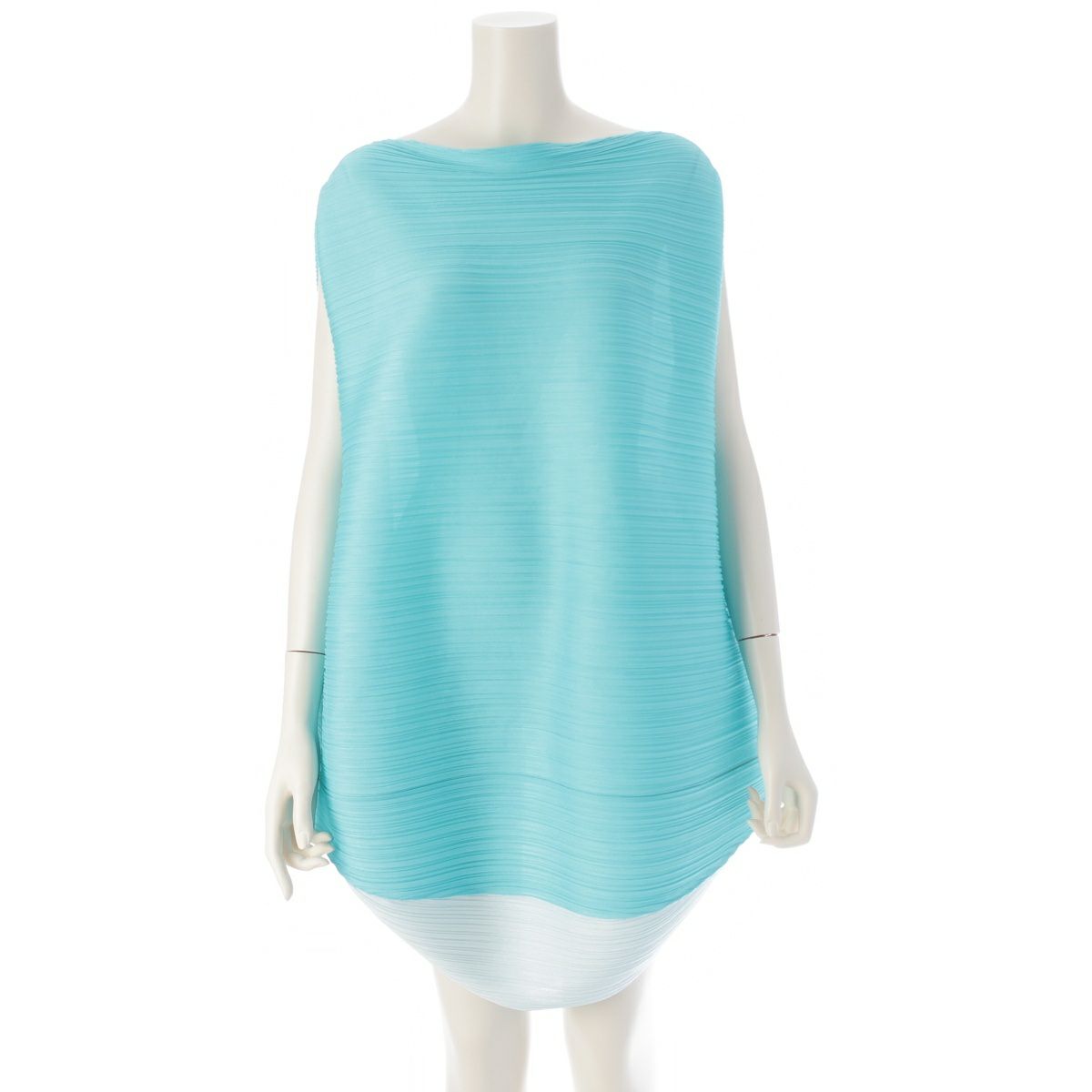 プリーツプリーズ イッセイミヤケ 横プリーツ 変形 バウンス ラウンド サークル トップス PP63-JT622 ライトブルー ホワイト 3
