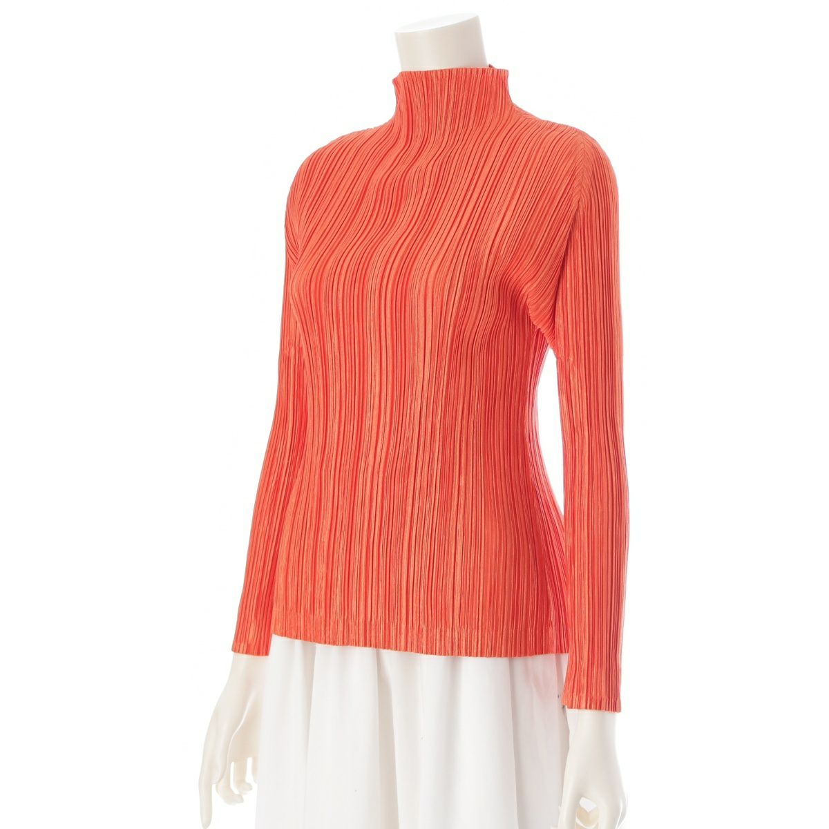 プリーツプリーズ イッセイミヤケ ボトルネック 長袖 カットソー トップス オレンジ 3