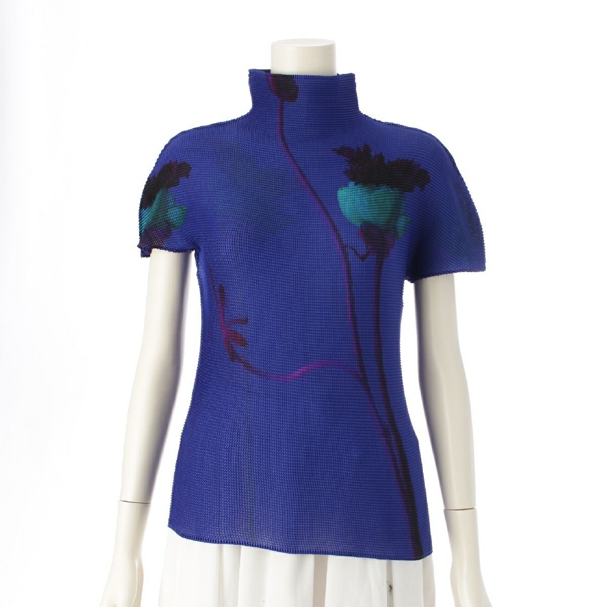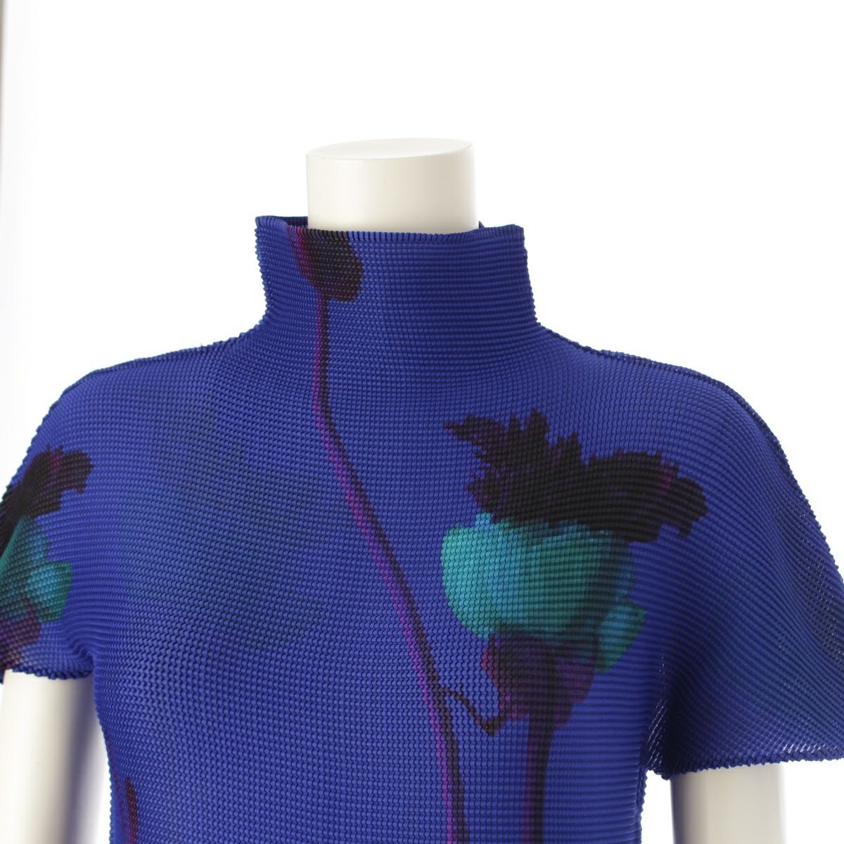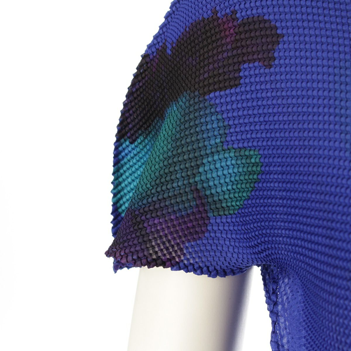 ミー イッセイミヤケ 樹木柄 ボックスプリーツ ハイネック カットソー Tシャツ MI71FK485 ブルー
