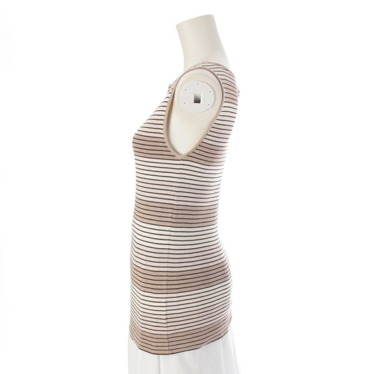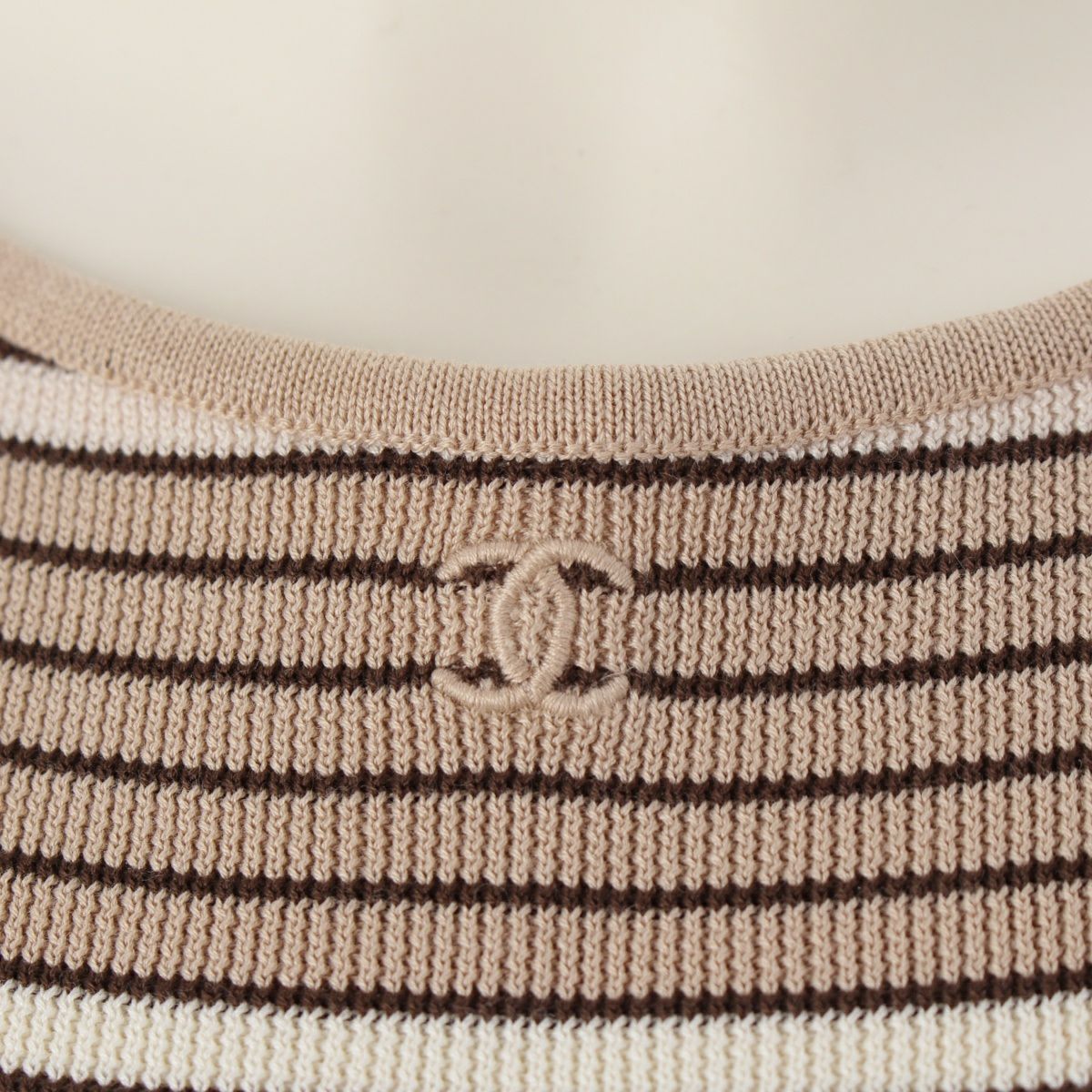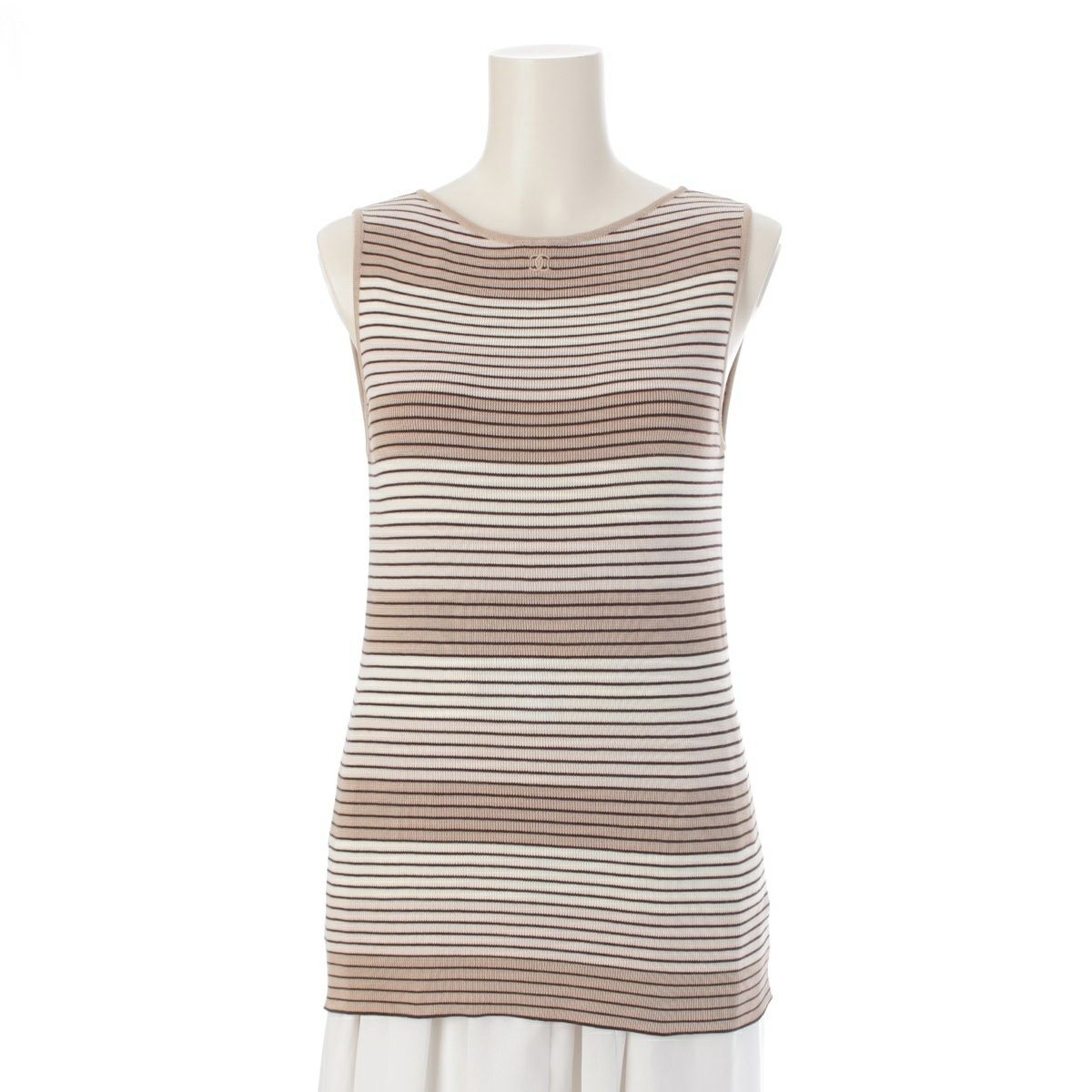 シャネル 98P コットン ココマーク刺繍 ボーダー ニット タンクトップ P10205 ベージュ×ブラウン 40