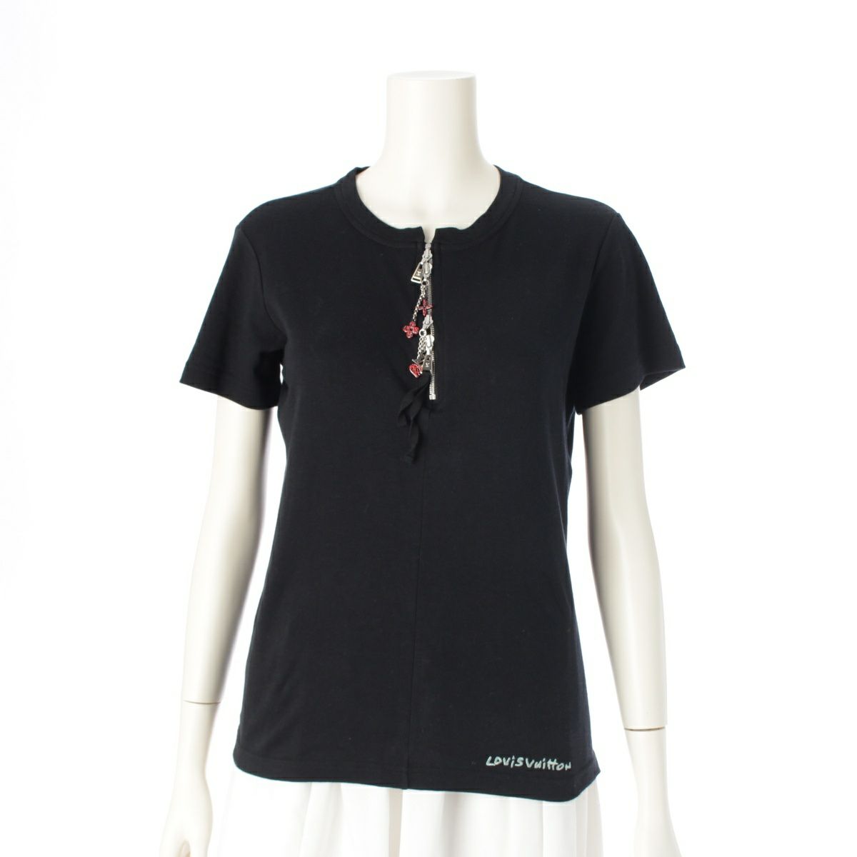 ルイヴィトン 07SS コットン グラフィティ チャーム 刺繍 ハーフジップ 半袖 カットソー トップス ブラック M