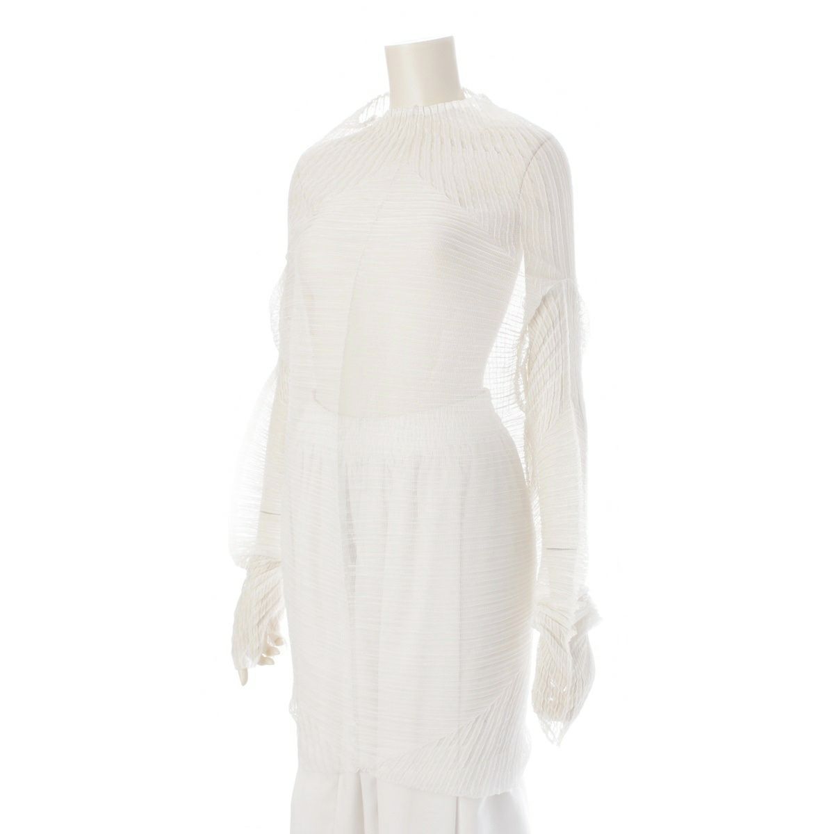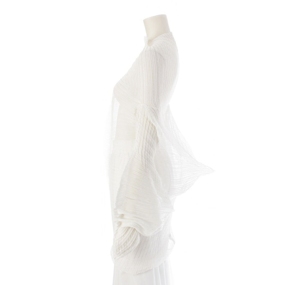 イッセイミヤケ 横 バウンス プリーツ 変形 3D 長袖 カットソー トップス IM84-FJ914 ホワイト L
