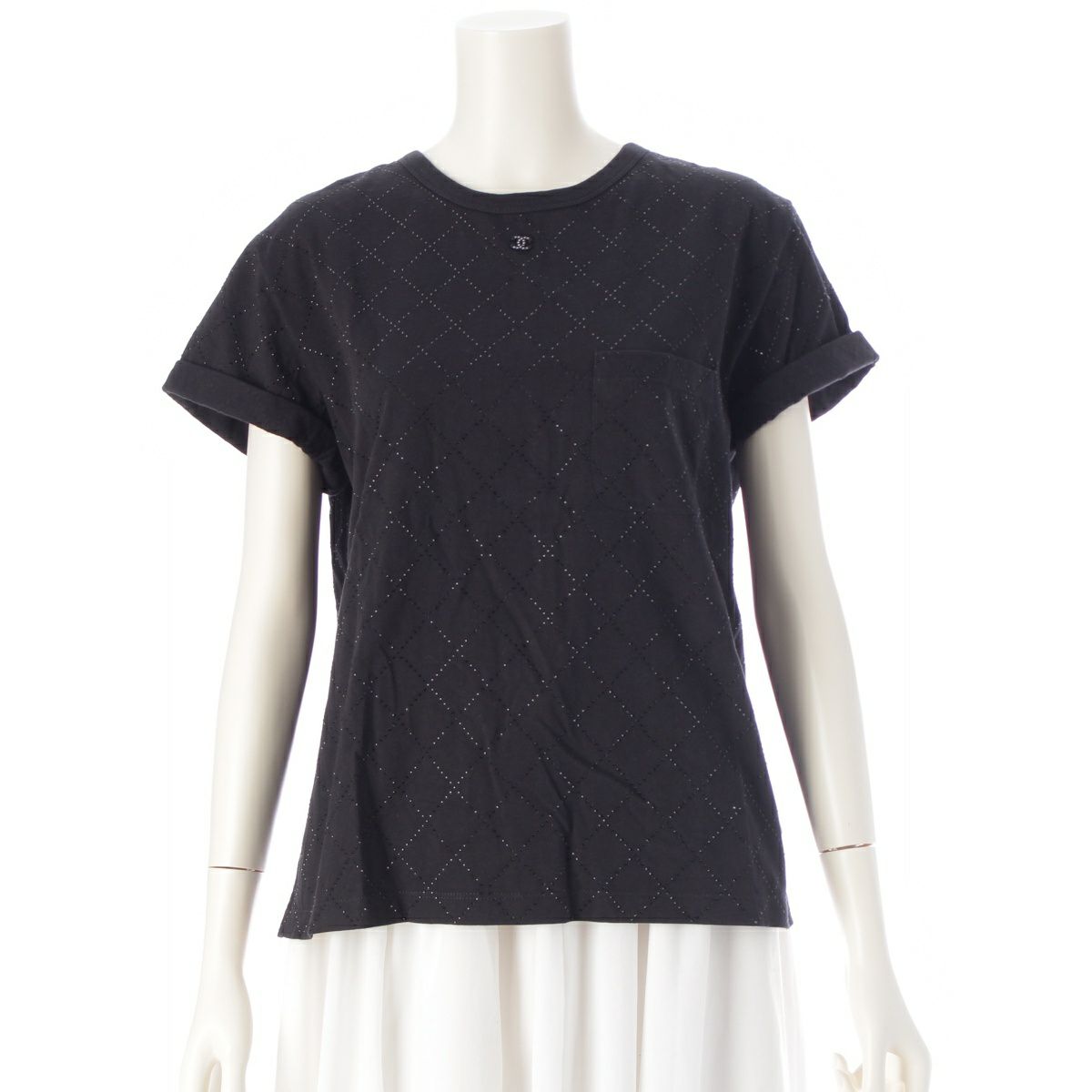 シャネル 2025年 コットン マトラッセ ココマーク ライン Tシャツ カットソー P79556 ブラック 40