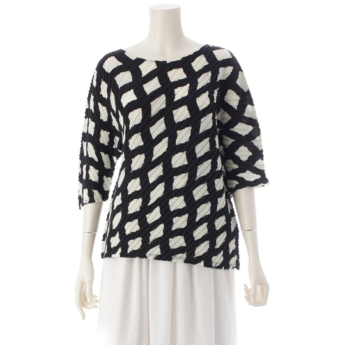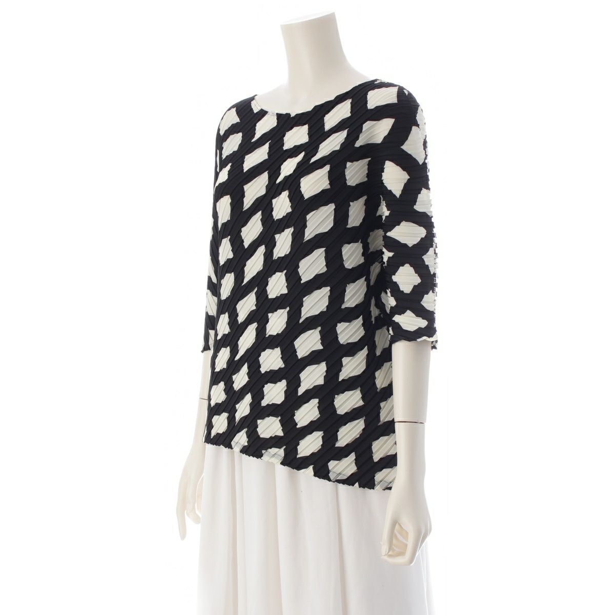 イッセイミヤケ REITERATION PLEATS 七分袖 カットソー トップス IM33FJ149 ブラック×ホワイト 2