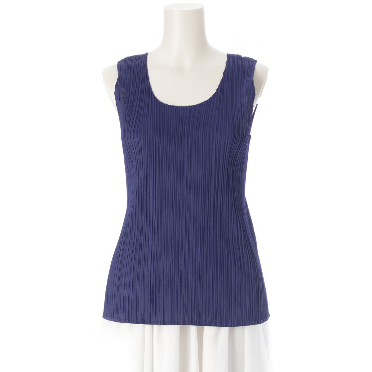 イッセイミヤケ ラウンドネック ノースリーブ タンクトップ PP05-JK600 ネイビー M