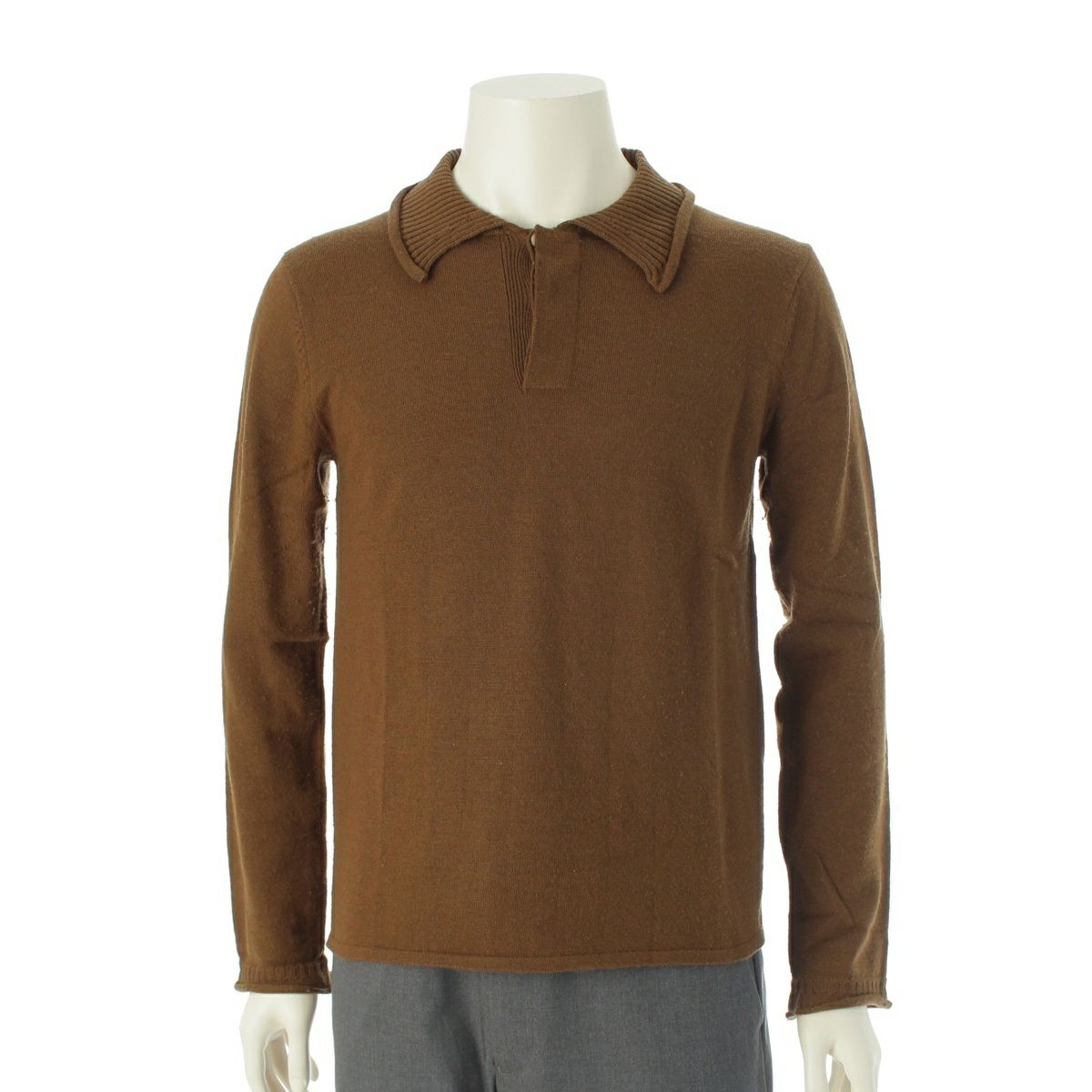 ジャンポールゴルチエ オム ウール アーカイブ リブニット襟 切替 シェルボタン ニットポロ ポロシャツ トップス カーキ 48