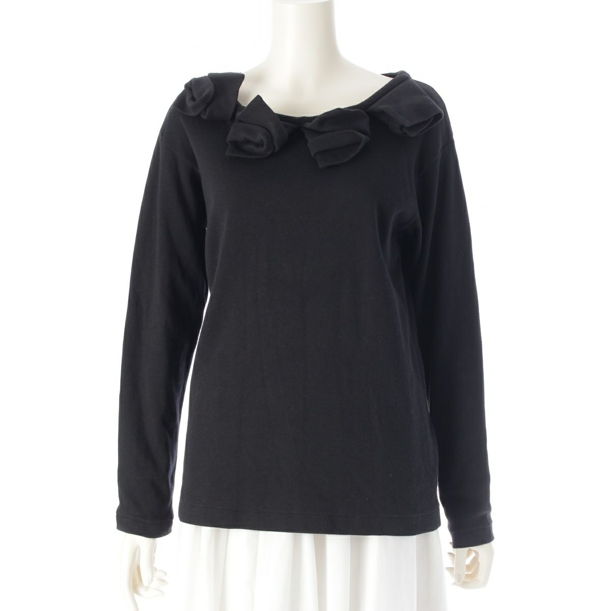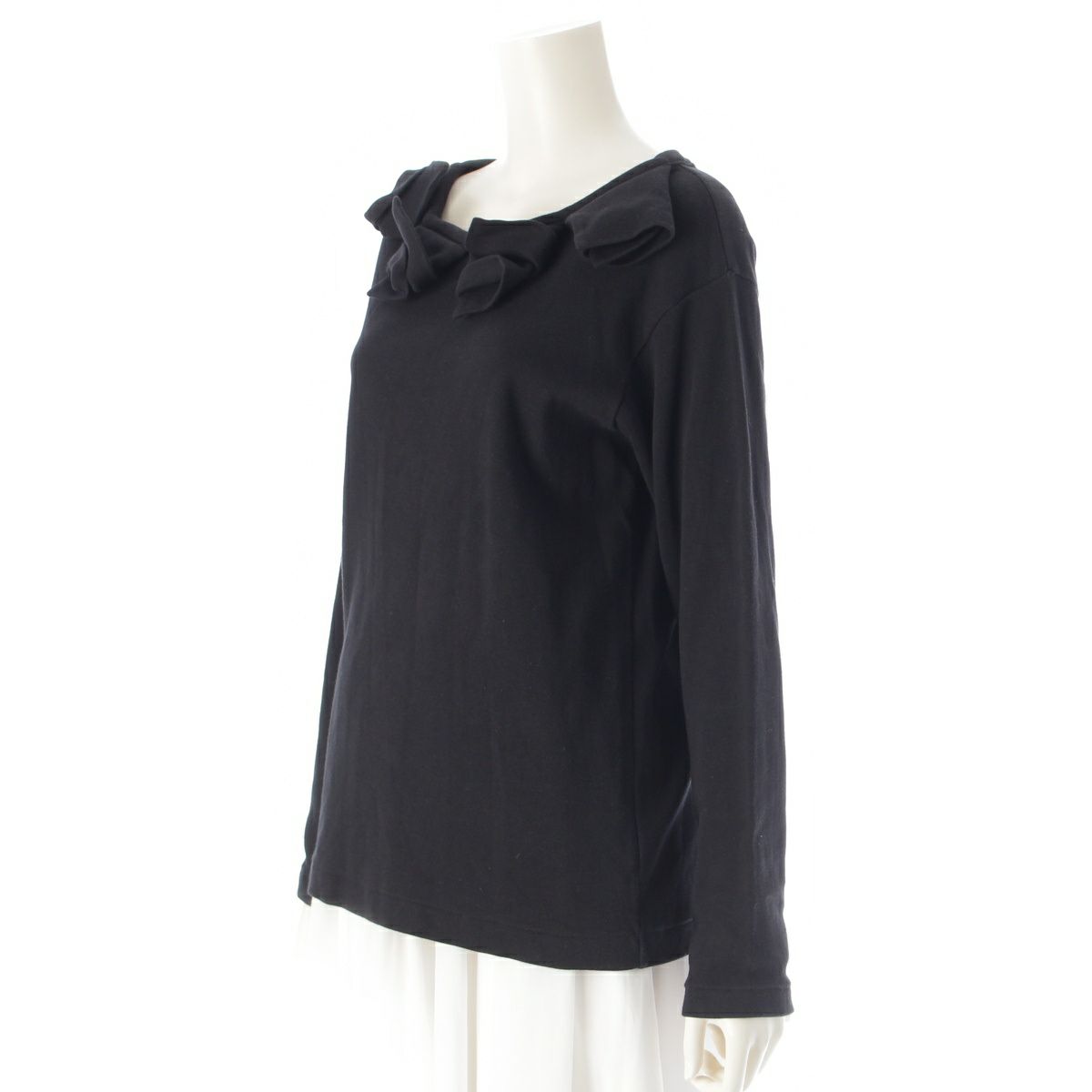 ワイズ ワークショップ フラワーモチーフ クルーネック 長袖Tシャツ ロンT トップス WI-T47-07 ブラック