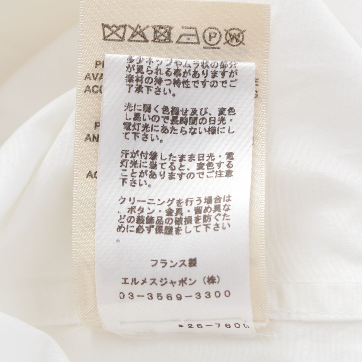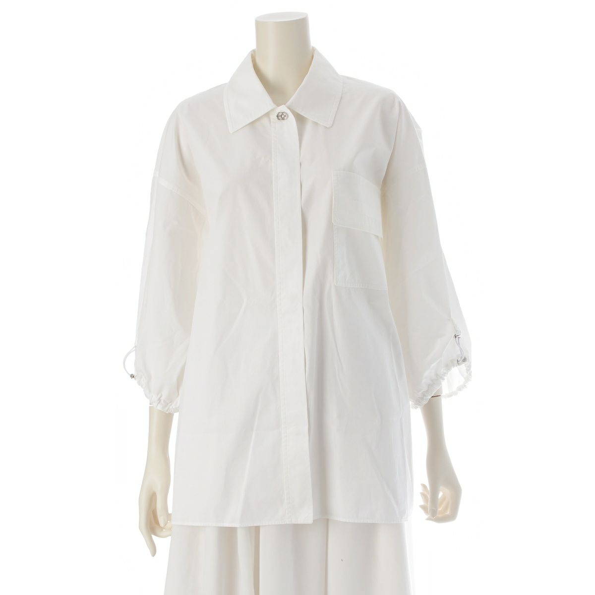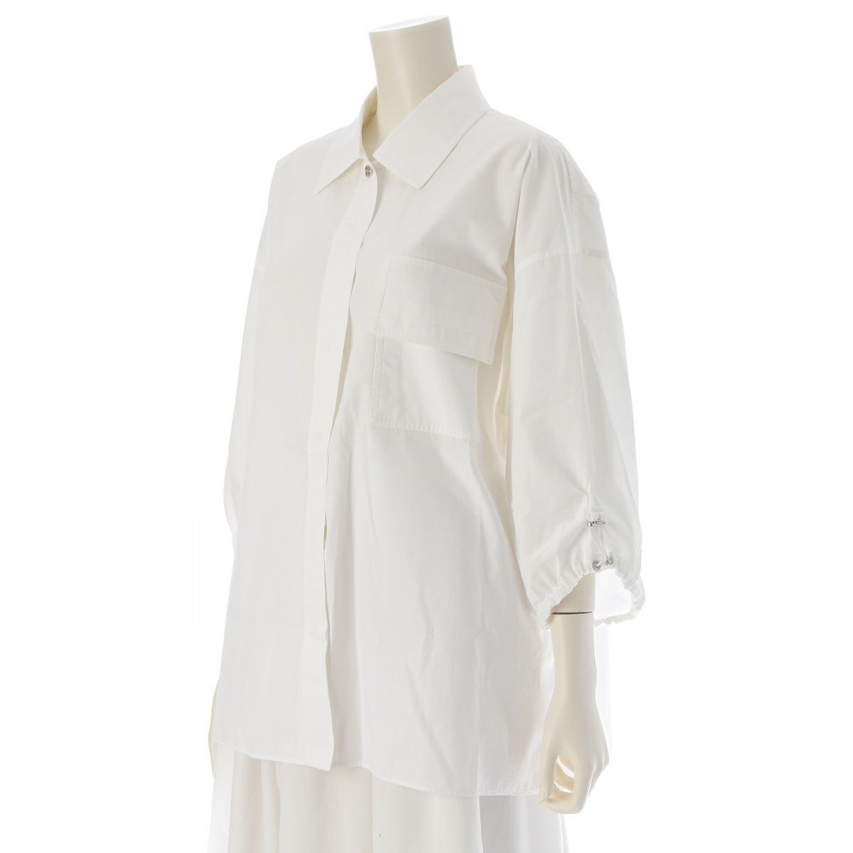 エルメス コットン オーバーサイズ ドローコード 七分袖 シャツ トップス 2E0604DJ ホワイト 36