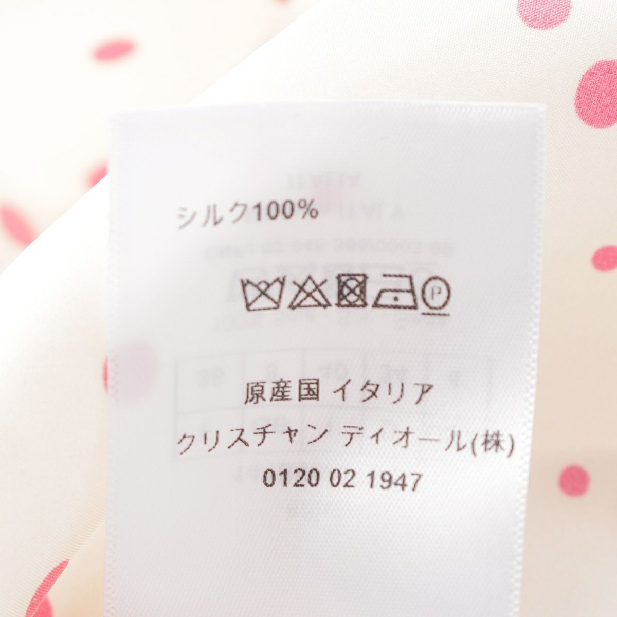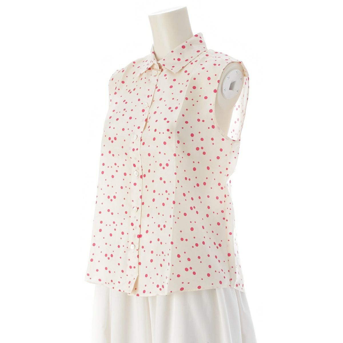 ディオール 21年 シルク ビー刺繍ドット ノースリーブ シャツ トップス 141B60A6764 アイボリー ピンク F36