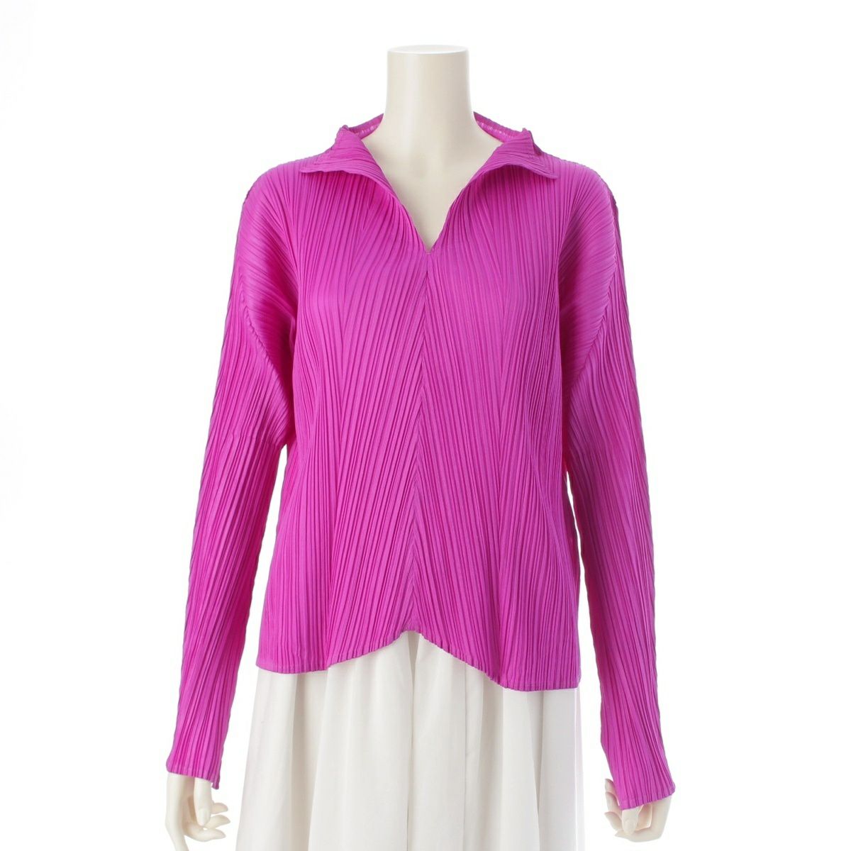プリーツプリーズ イッセイミヤケ Vネック スキッパー ロングスリーブ カットソー トップス PP23-JJ182 パープル 3