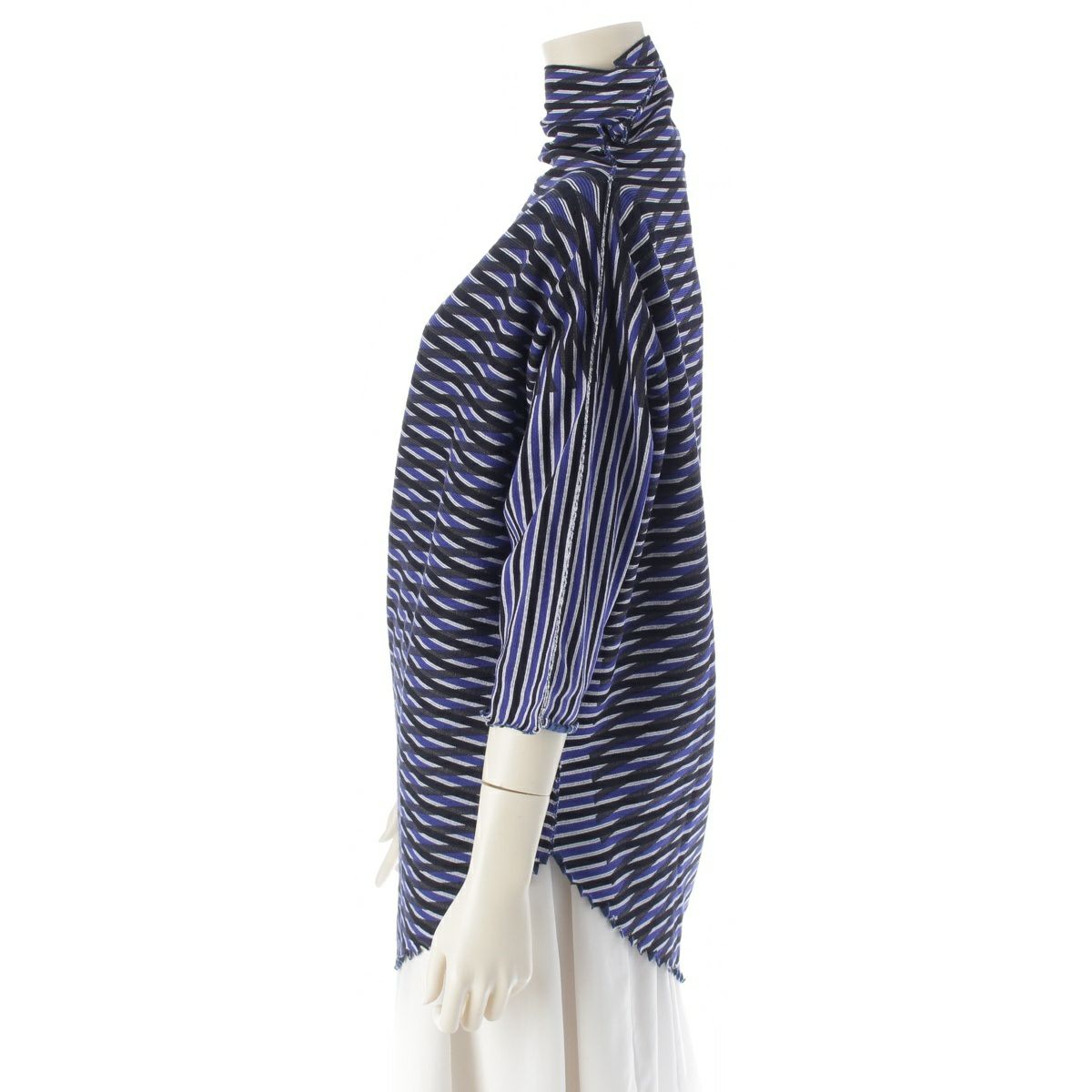 イッセイミヤケ 2016年 16AW ナイロン コットン ニット A-POC INSIDE 変形 モックネック カットソー トップス IM64KK704 ブラック ブルー 2