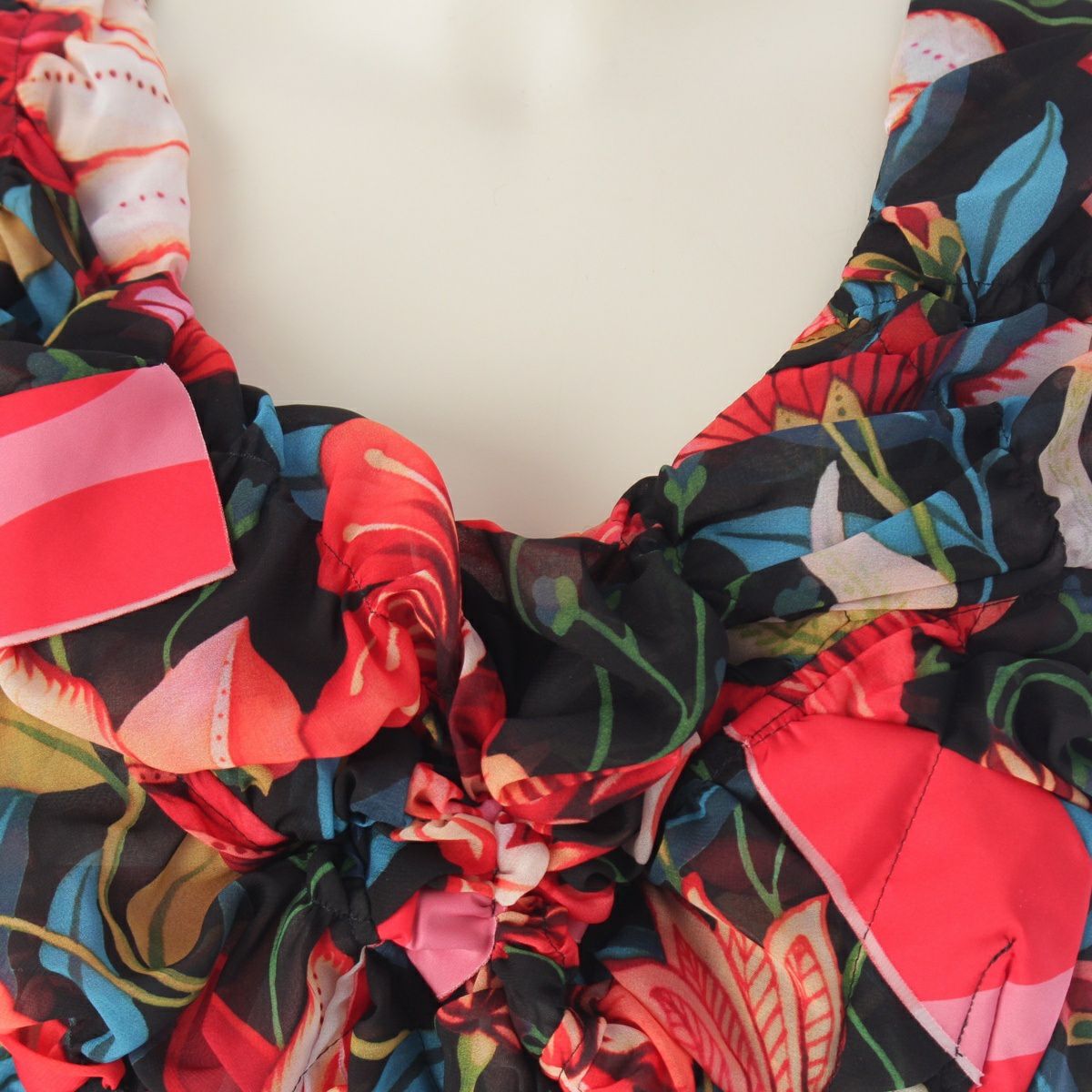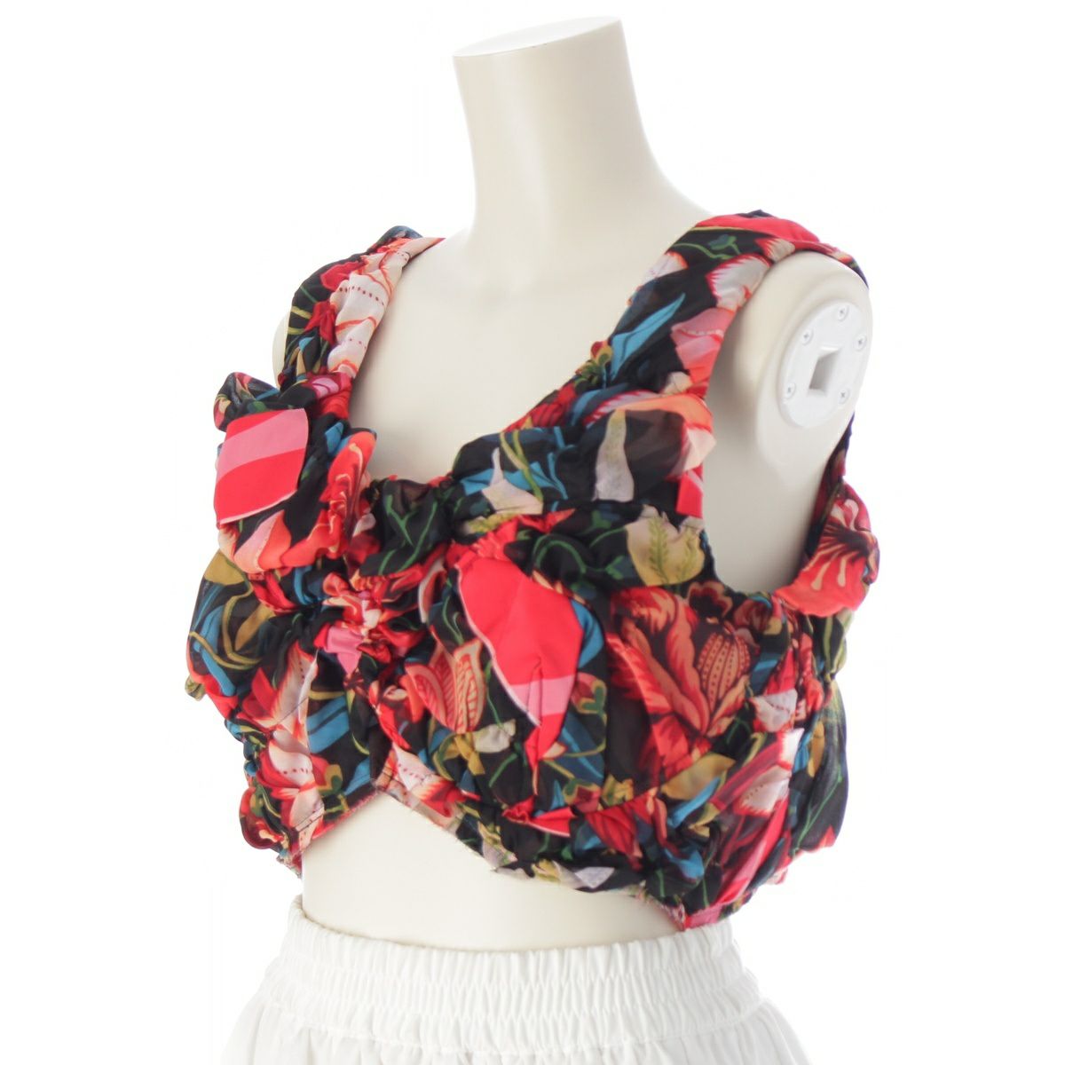 コムデギャルソン AD2023 フローラル ギャザー ビスチェ トップス GM-K808 レッド系マルチカラー S