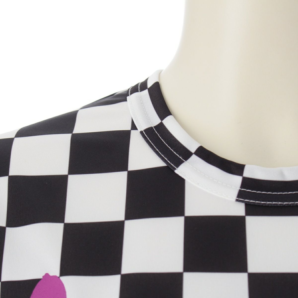 コムデギャルソン AD2023 メッセージプリント チェッカー カットソー RM-T025 ブラック×ホワイト×パープル XS