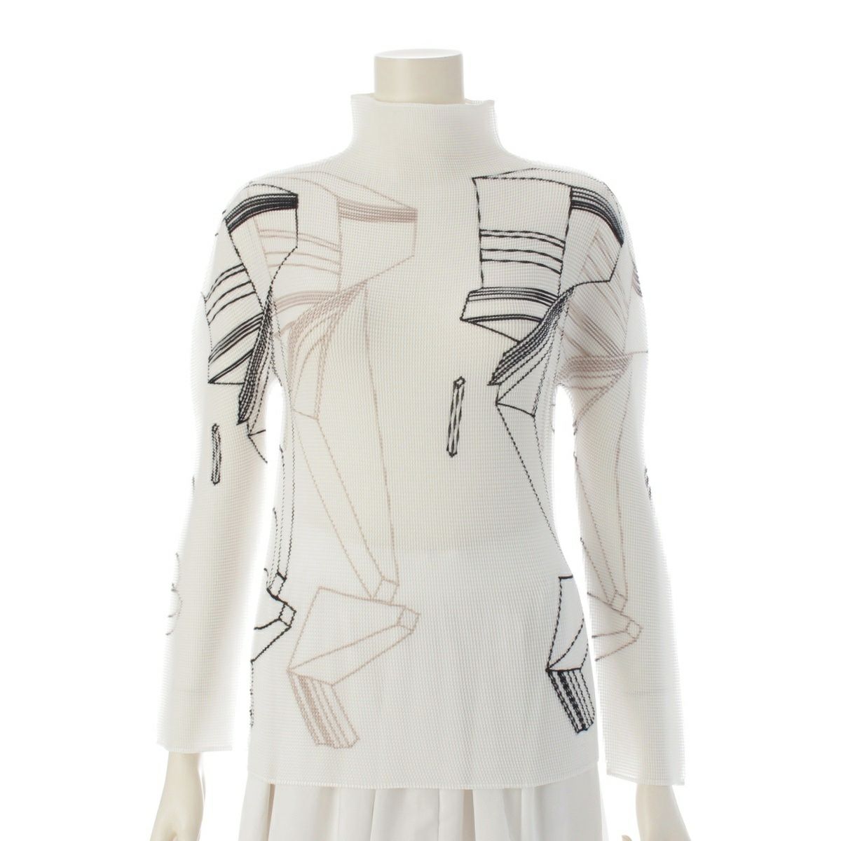 ミー イッセイミヤケ 11AW 長袖 ボトルネック プリーツ カットソー トップス MI14FJ281 ホワイト ‐