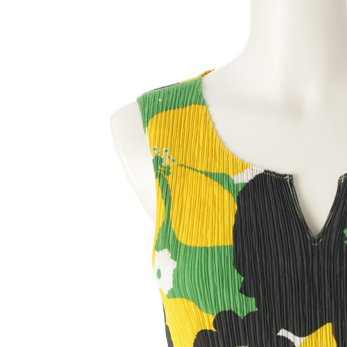 イッセイミヤケ 花柄 ノースリーブ プリーツ カットソー トップス IM42FJ232 ブラック イエロー グリーン 2