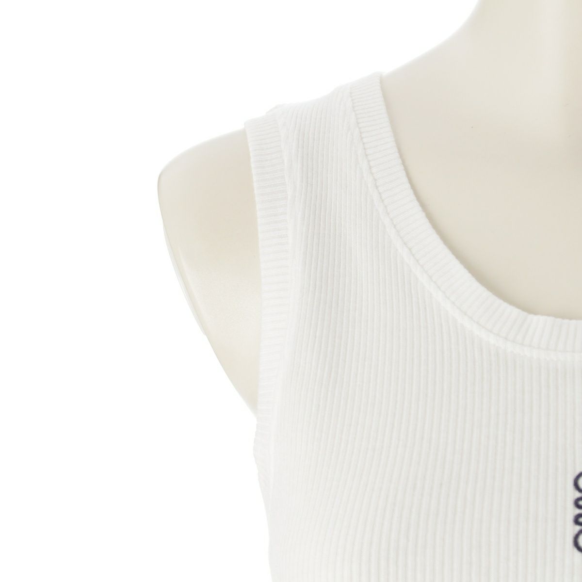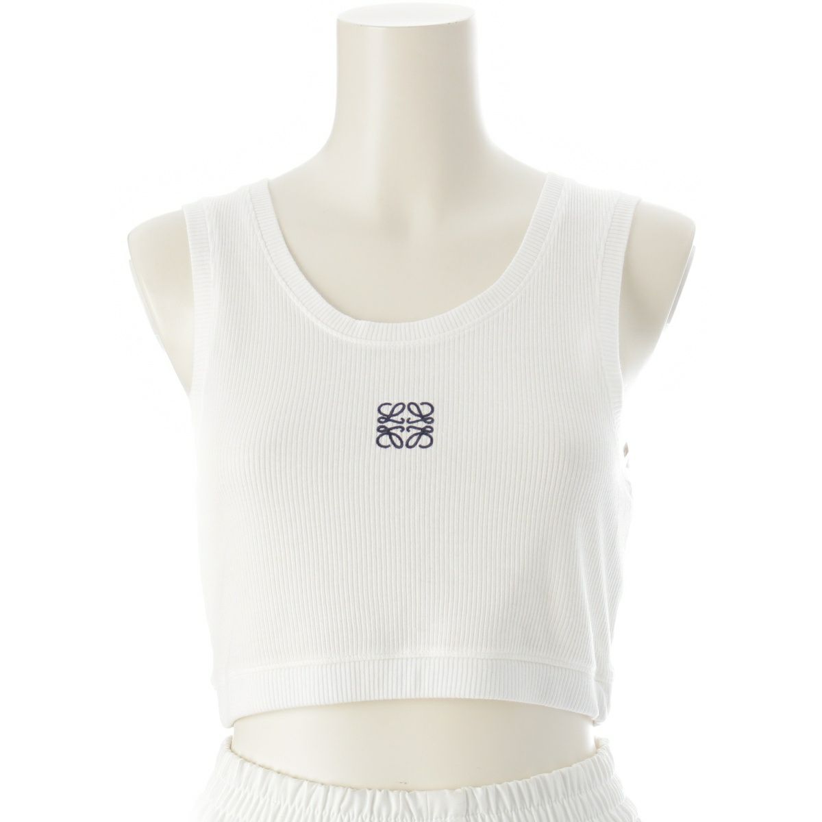 ロエベ コットン ANAGRAM アナグラム 刺繍 リブ クロップド タンクトップ トップス ホワイト S