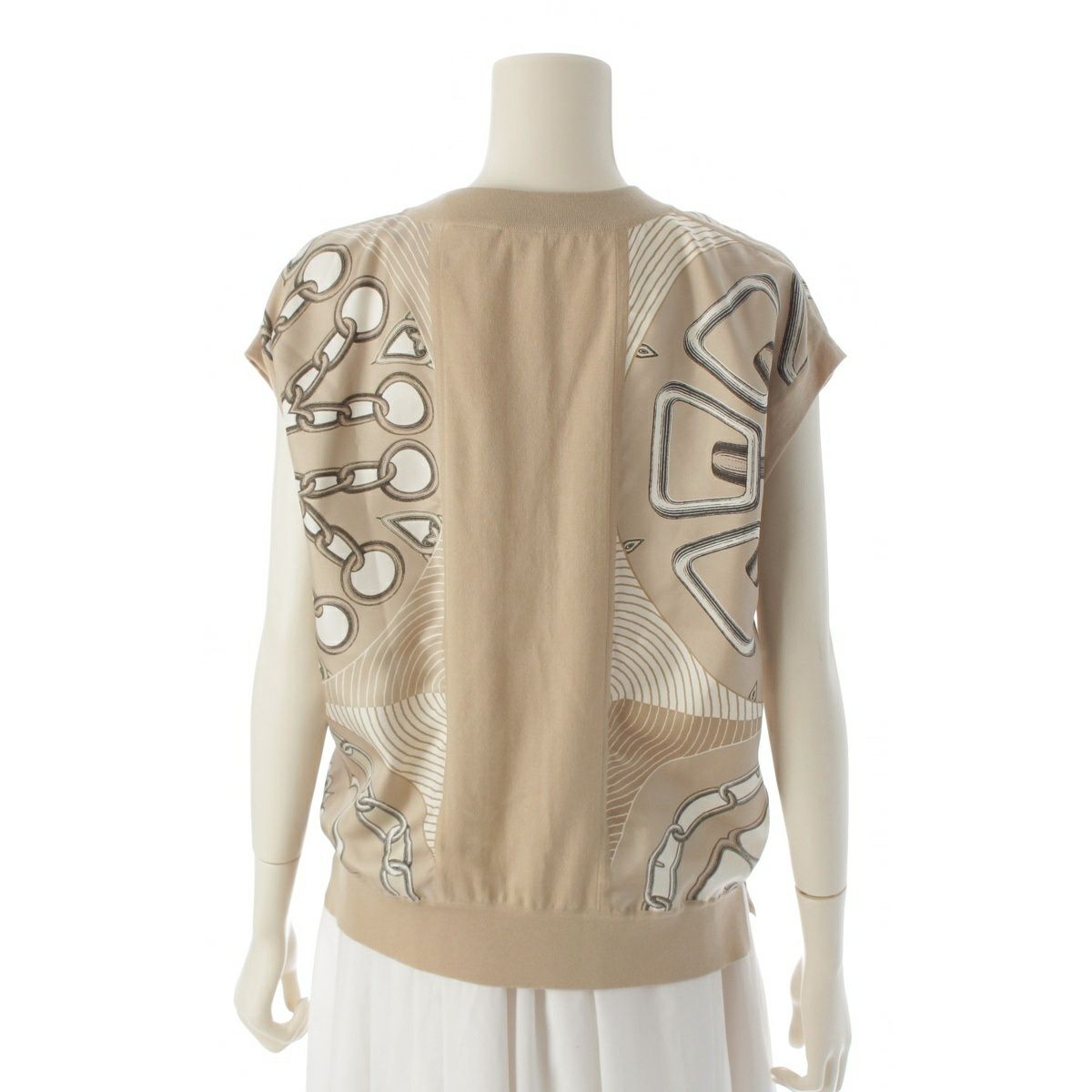 エルメス ウール シルク ニット 切替 カレイドスコープ ツイルレーヌ ノースリーブ トップス H4H2812DW ベージュ 38