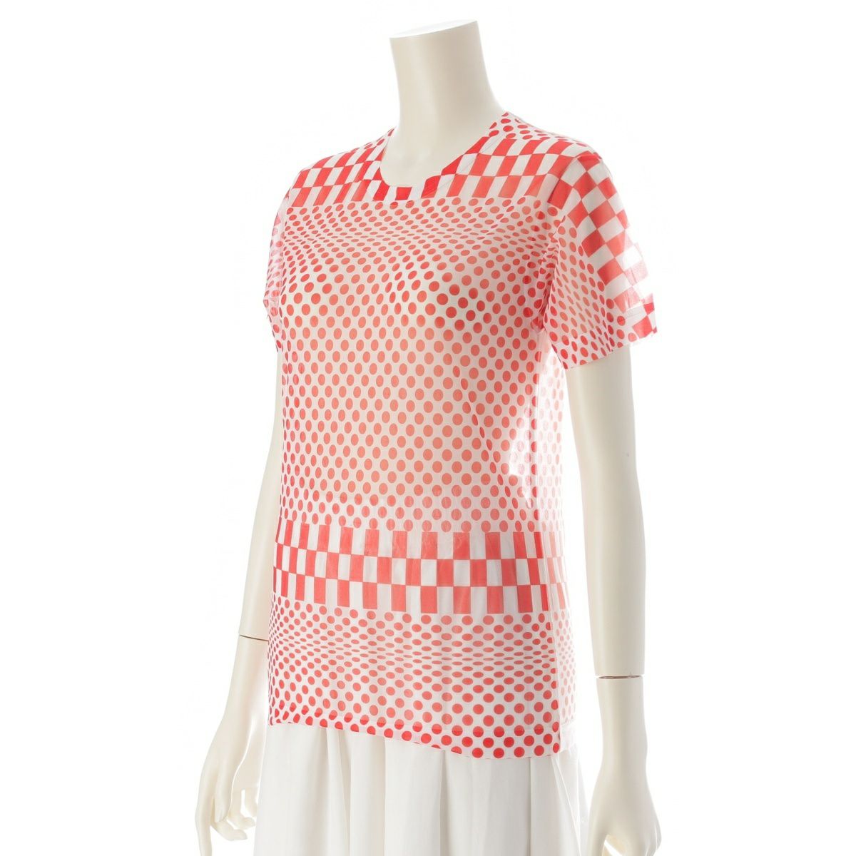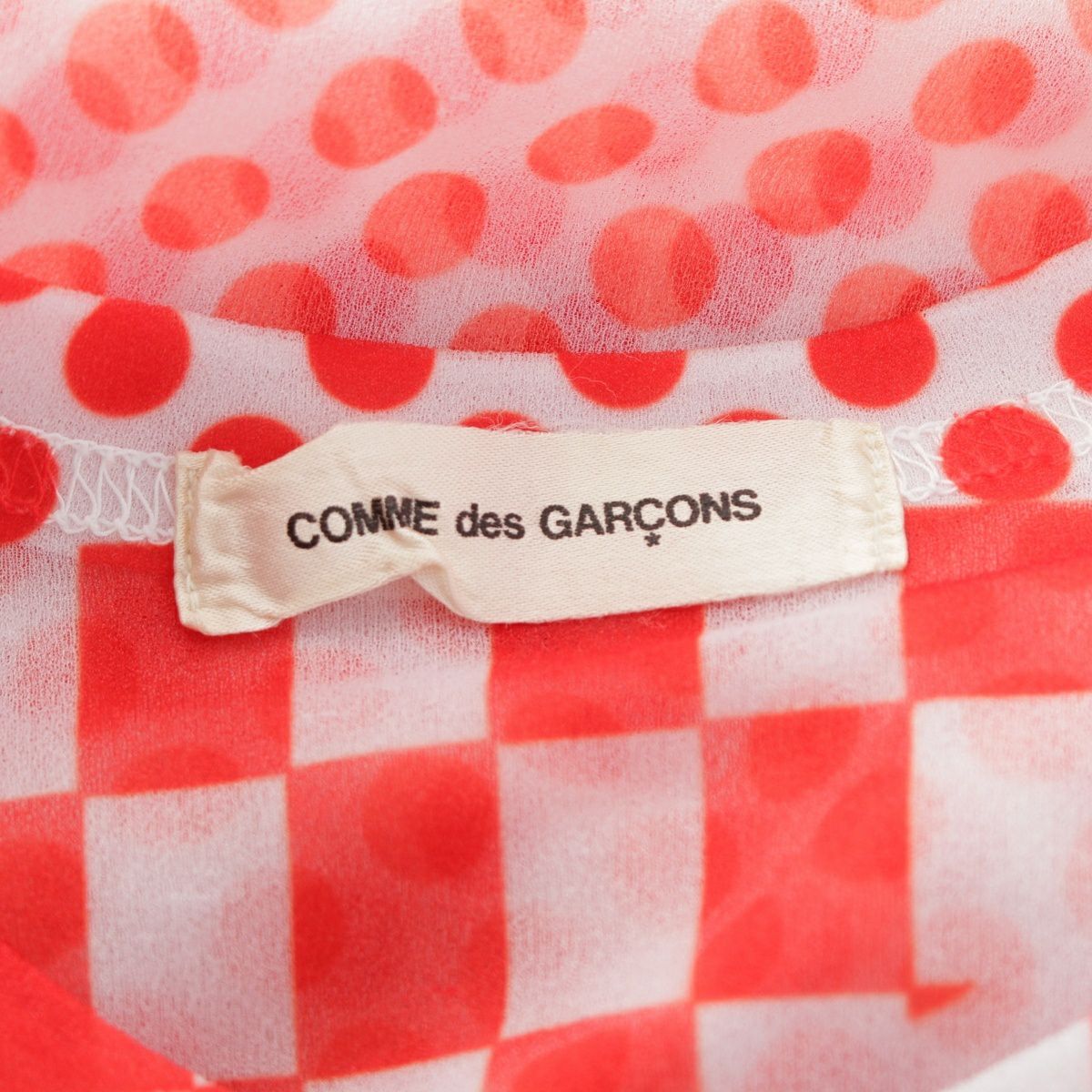 コムデギャルソン 2001年 ドット チェッカー シアー トップス ホワイト レッド