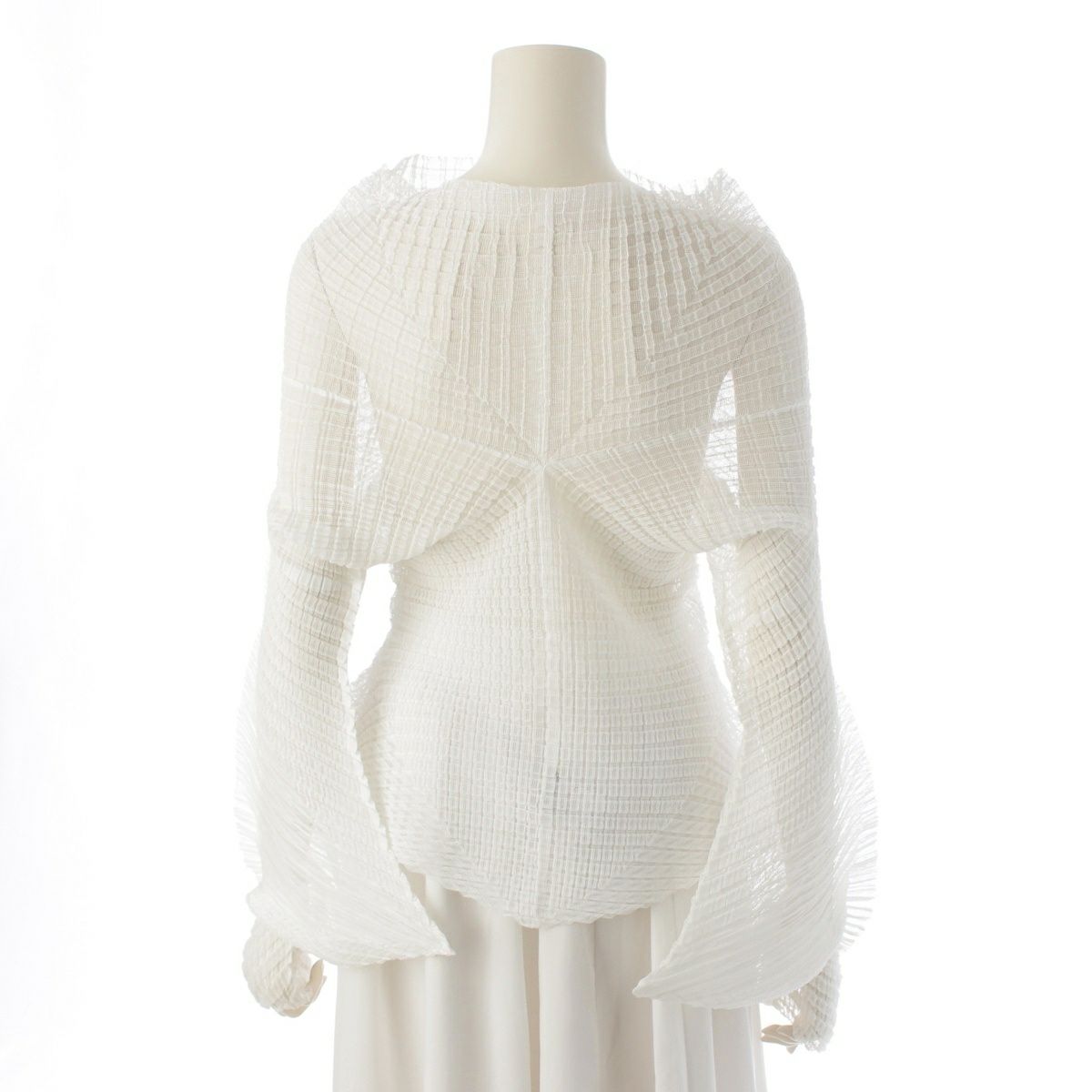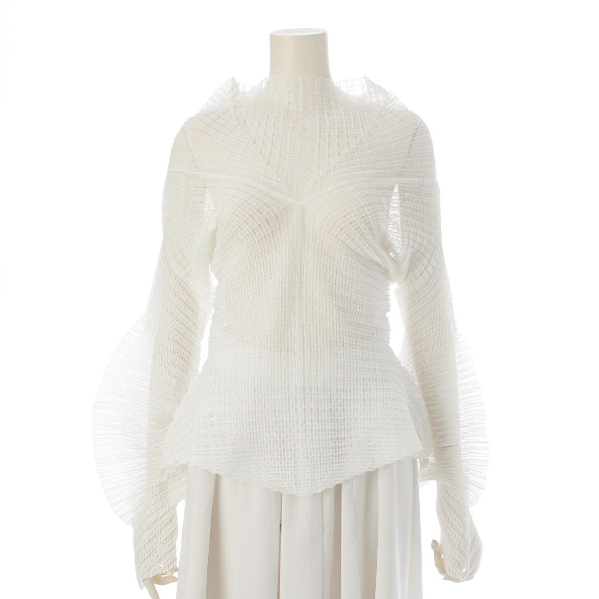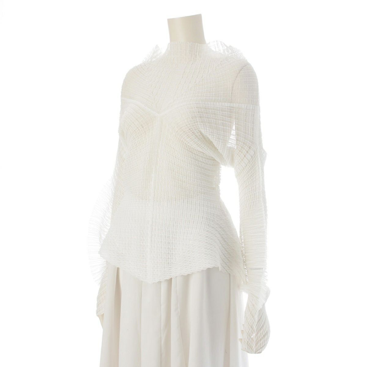 イッセイミヤケ メッシュ プリーツ 変形 デザイン カットソー トップス IM84-FJ915 ホワイト M