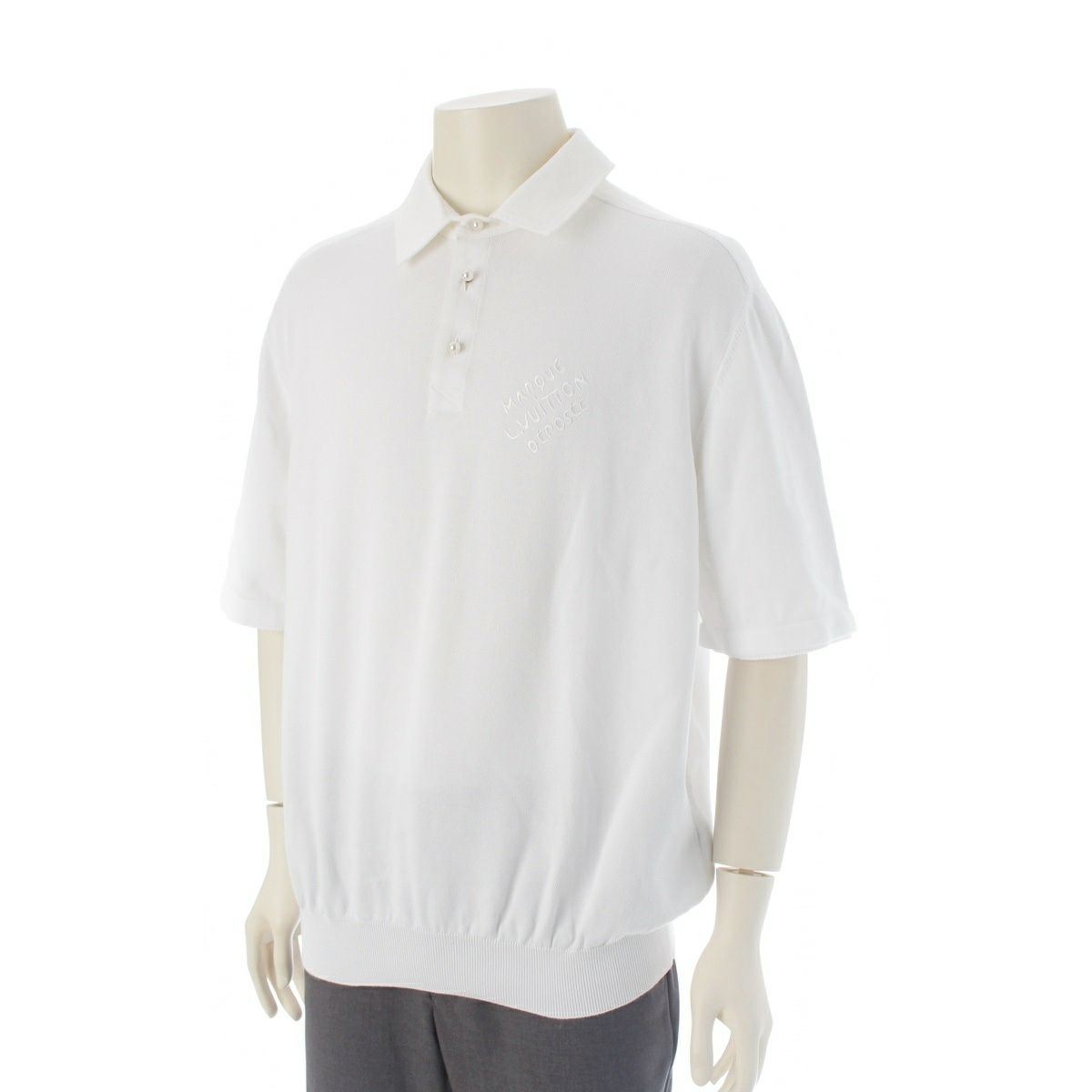 ルイヴィトン 24AW コットンプレンド エンブロイダリー ロゴ ポロシャツ ショートスリーブ パールボタン HRN14W ホワイト L