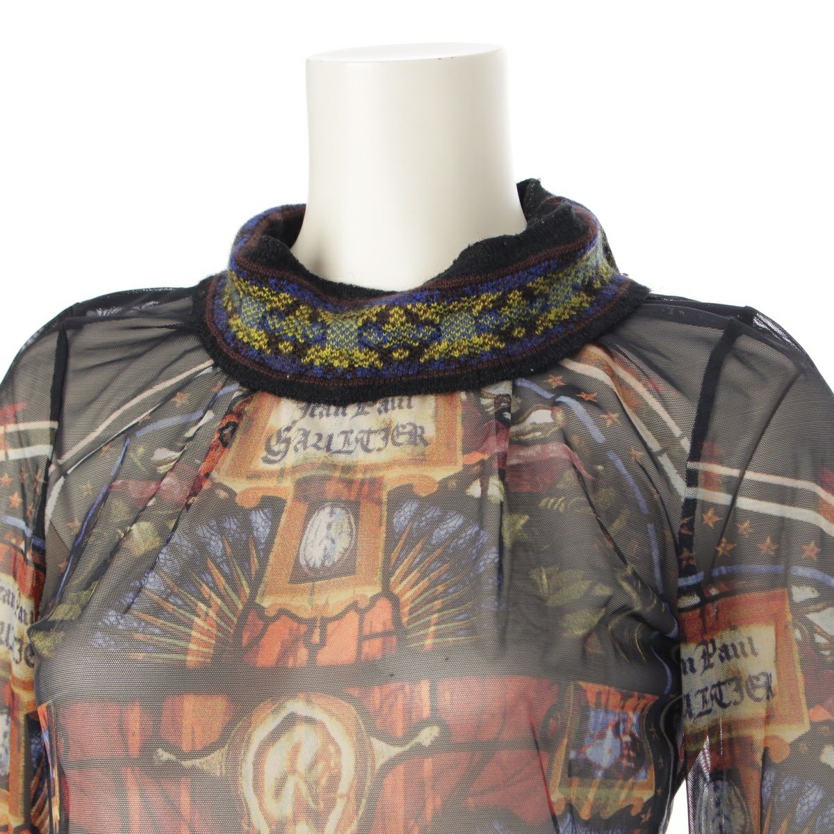 ジャンポールゴルチエ パワーネット ニット切替 ステンドグラス 教会 カットソー トップス マルチカラー 40