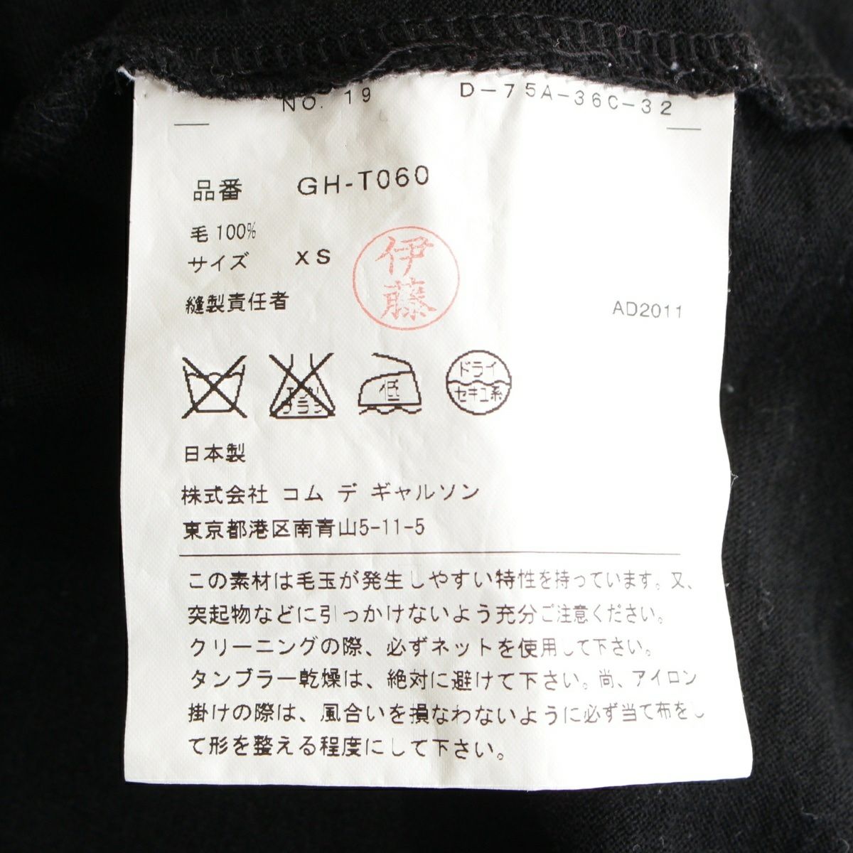 コムデギャルソン AD2011 ウール フリル 変形 長袖 カットソー トップス GH-T060 ブラック XS