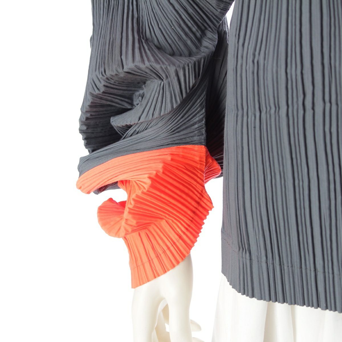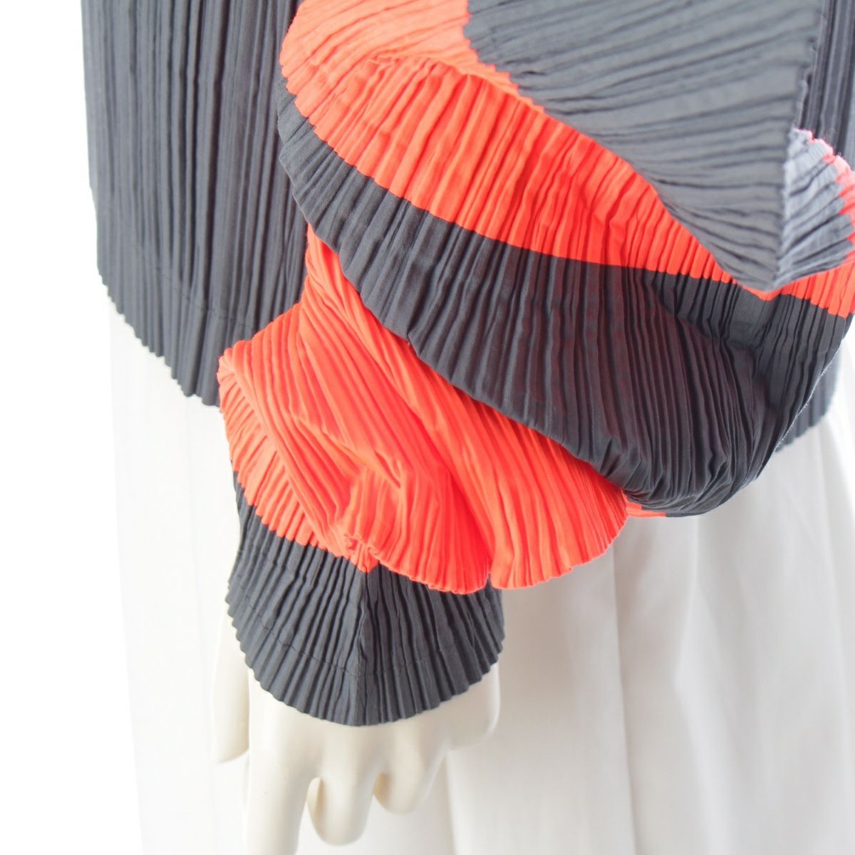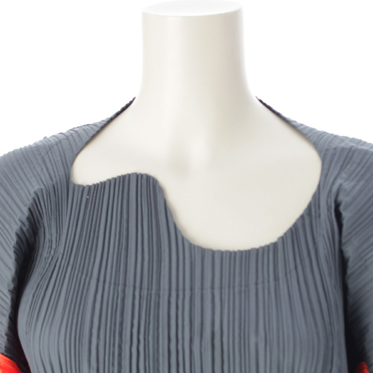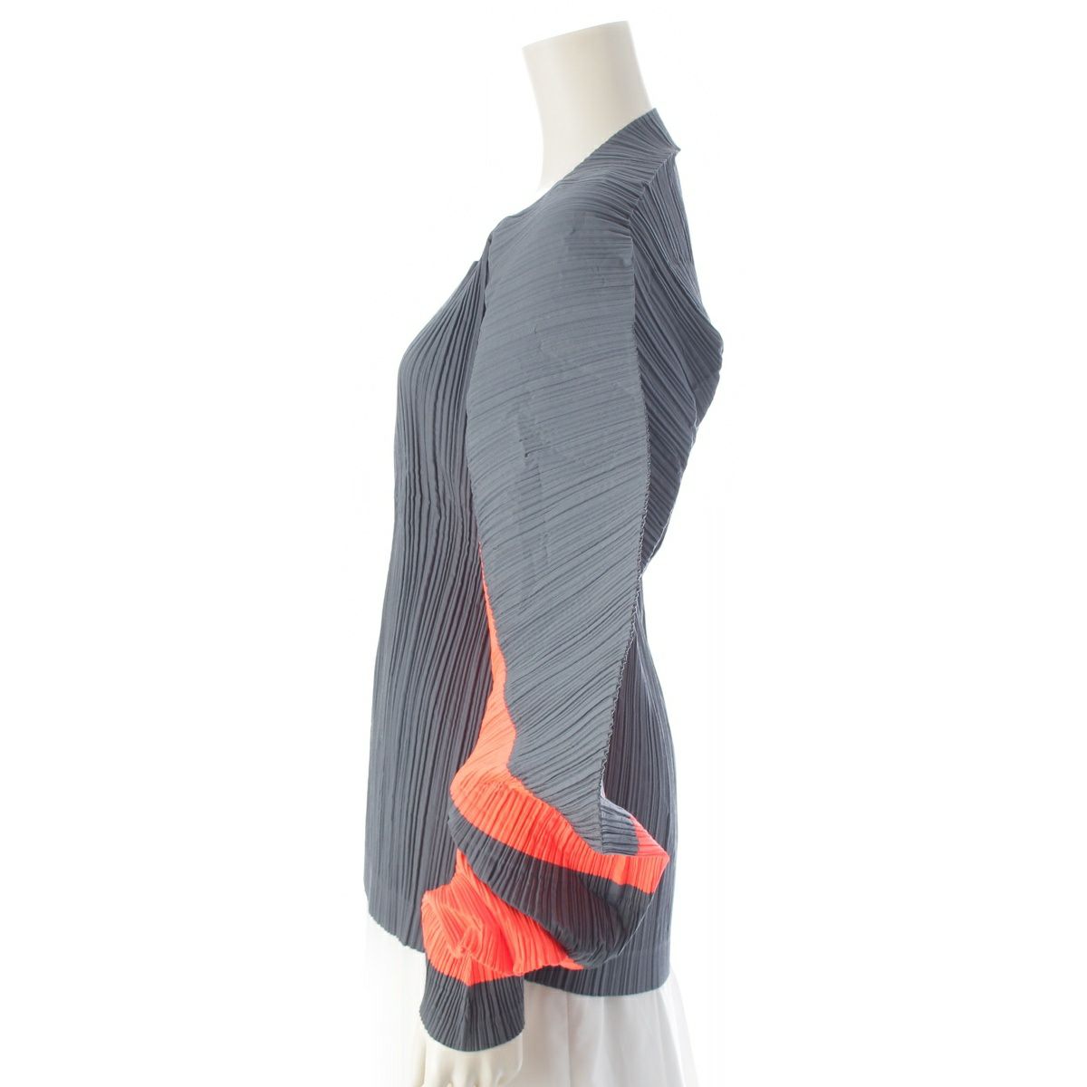 イッセイミヤケ 90s 91SS 変形 CURVED PLEATES カーブプリーツ 平面 二次元 プルオーバー トップス オレンジ チャコール L